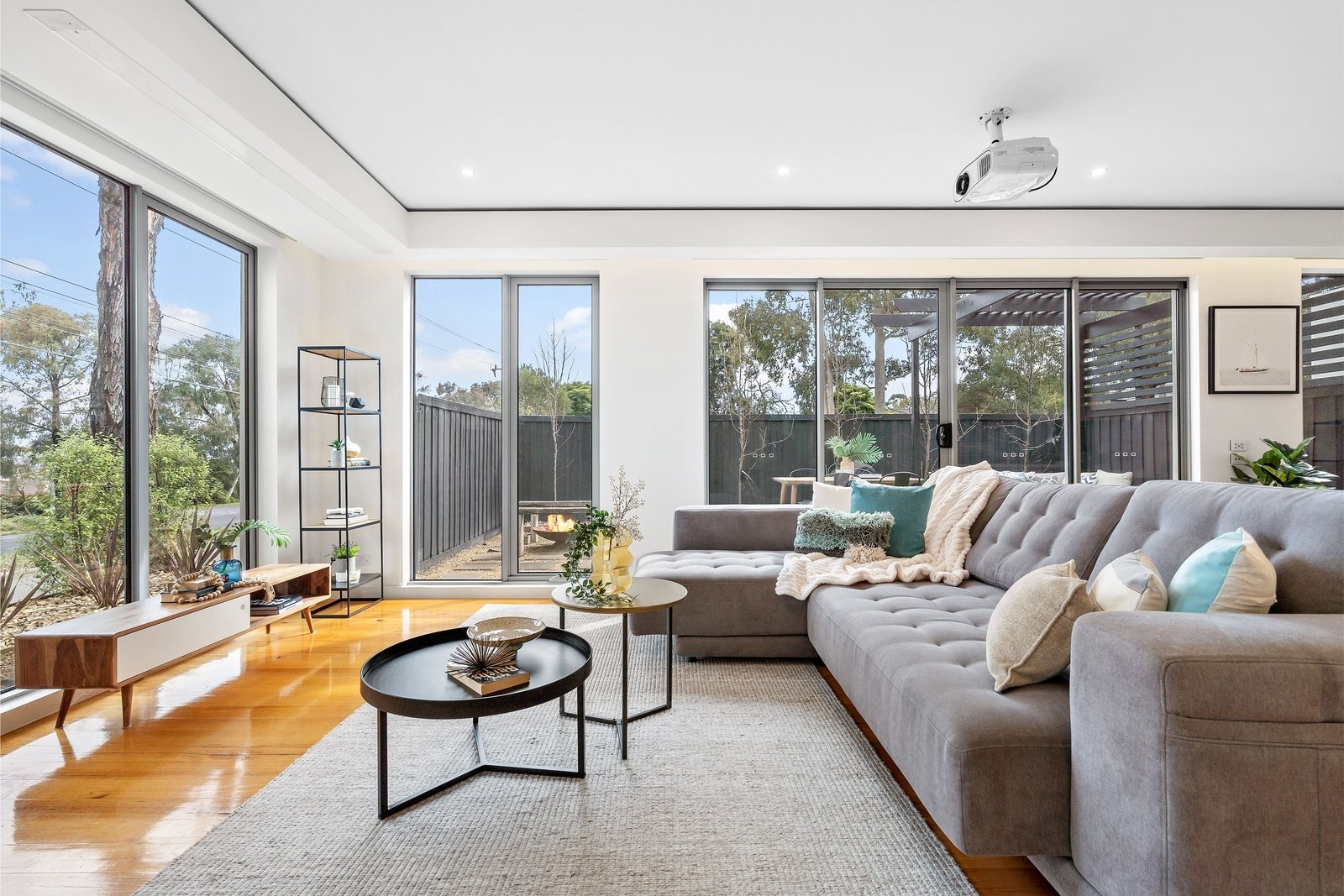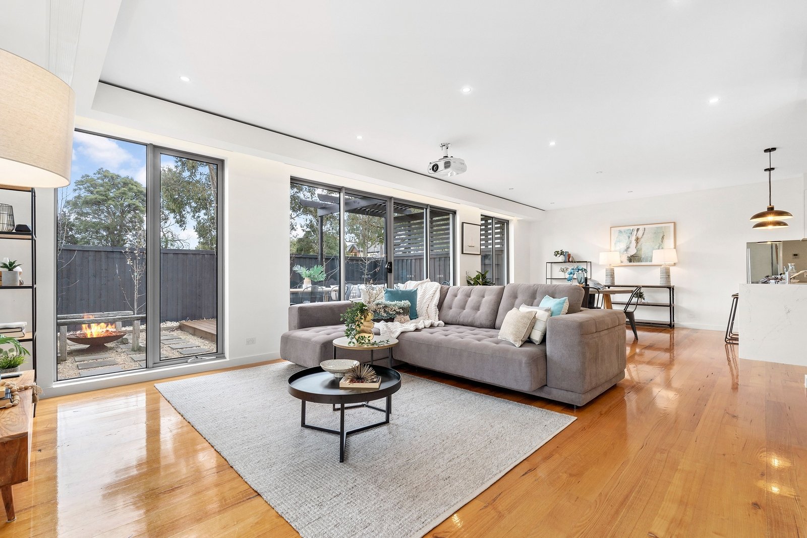 High ceilings and expanses of glass promote natural light flow and a sense of space, while warm timber floors, electric blinds, and the extensive use of stone, double glazed windows and designer décor create a wonderful warmth throughout.