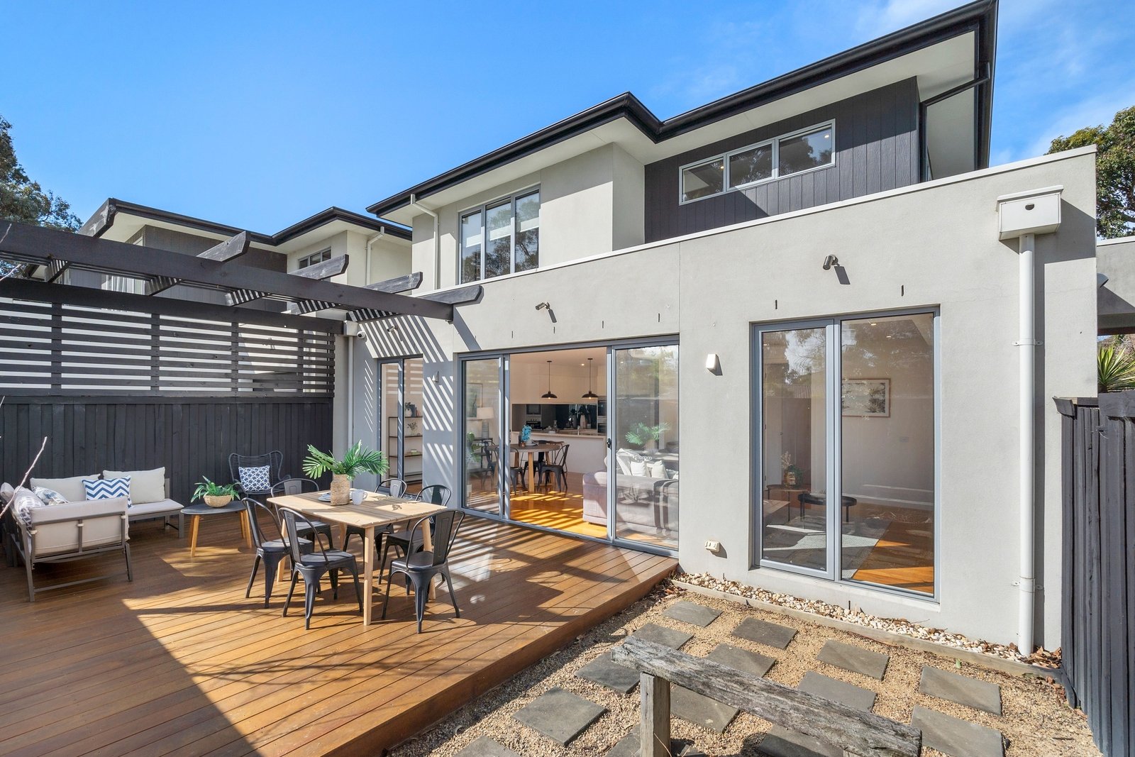 The brilliantly articulated and beautifully proportioned floorplan delivers family functionality with effortless ease. Upon entry, the sun-drenched open plan living and dining domain opens out through glass sliders to an expansive partly covered deck for relaxed alfresco living amidst private, leafy surrounds.