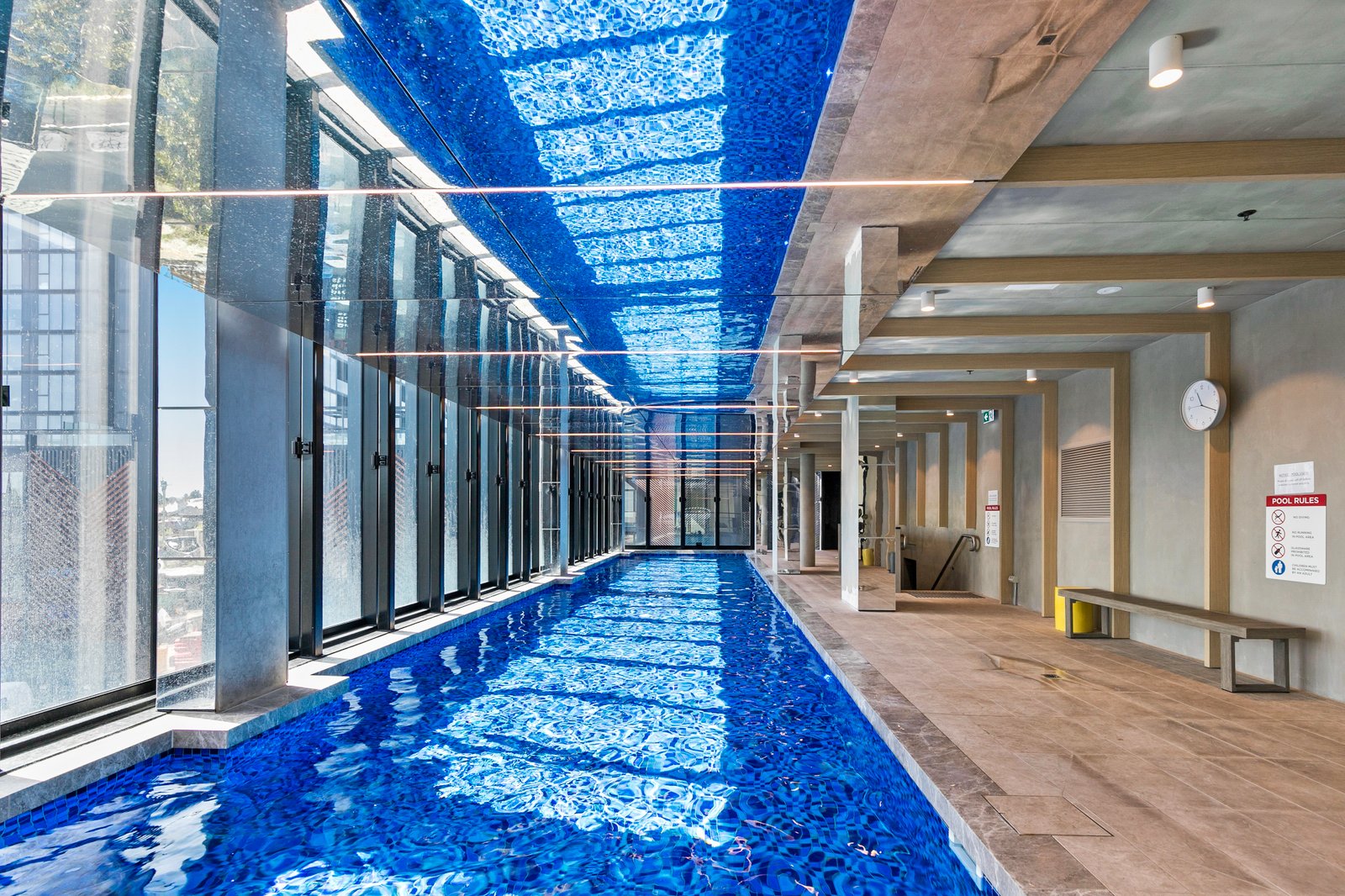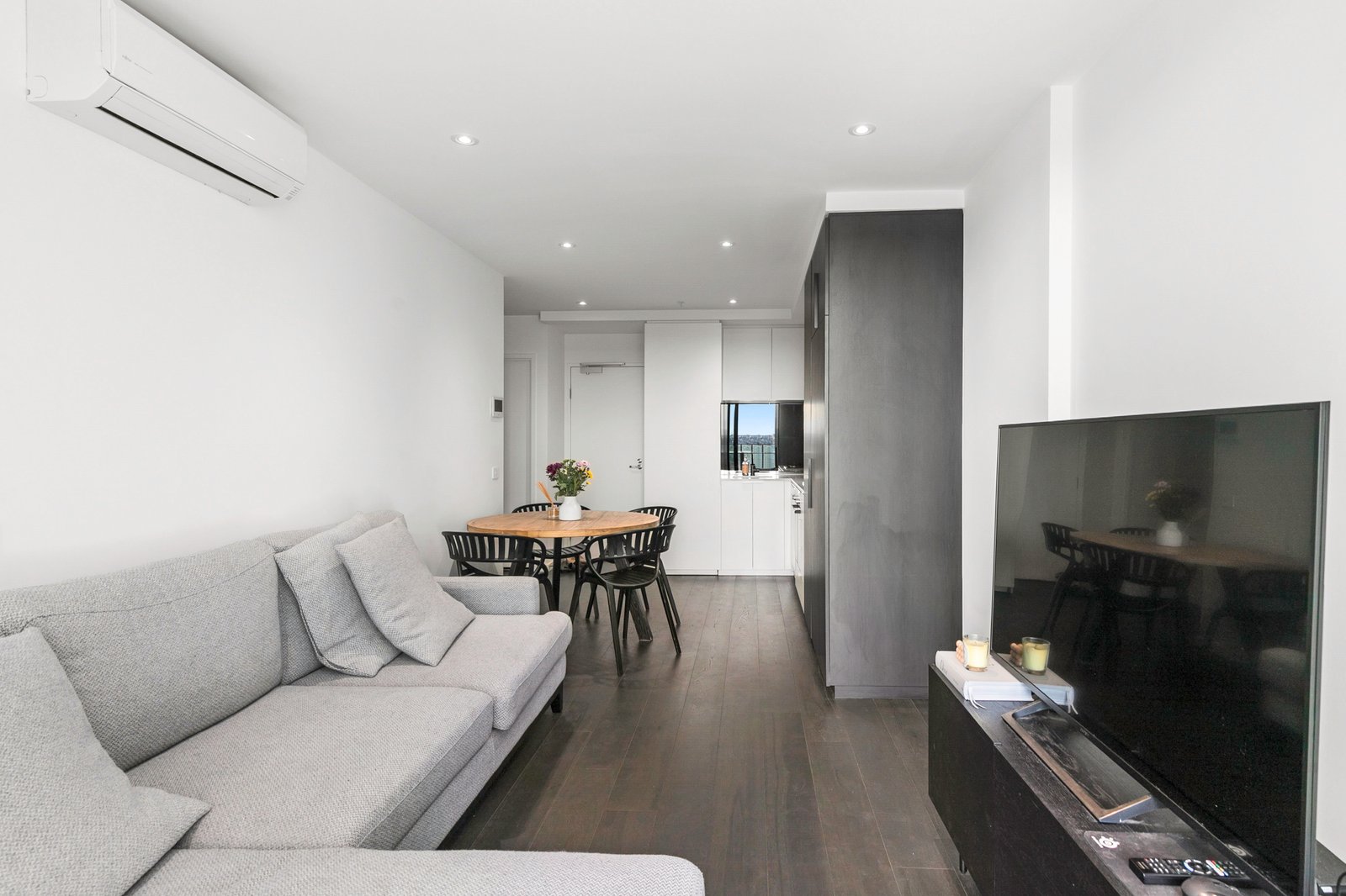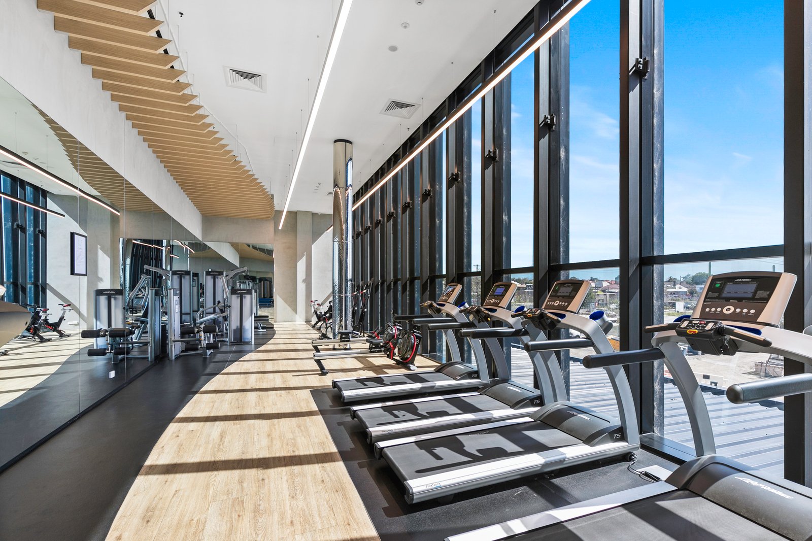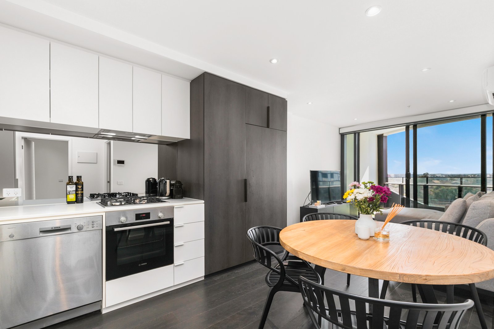 - Open-Plan Living: The open-plan living and dining area is bathed in natural light, boasting expansive glass windows and elegant timber floors.