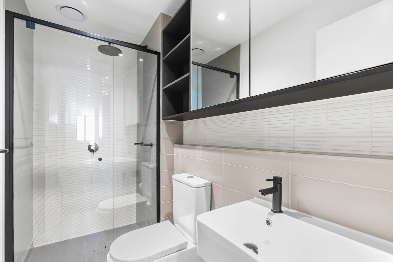 - 2 Bedrooms: One bedroom features mirrored double-sided wardrobes and a walk-through storage area leading to an ensuite bathroom. The second bedroom is equipped with a built-in wardrobe and offers views of the balcony.