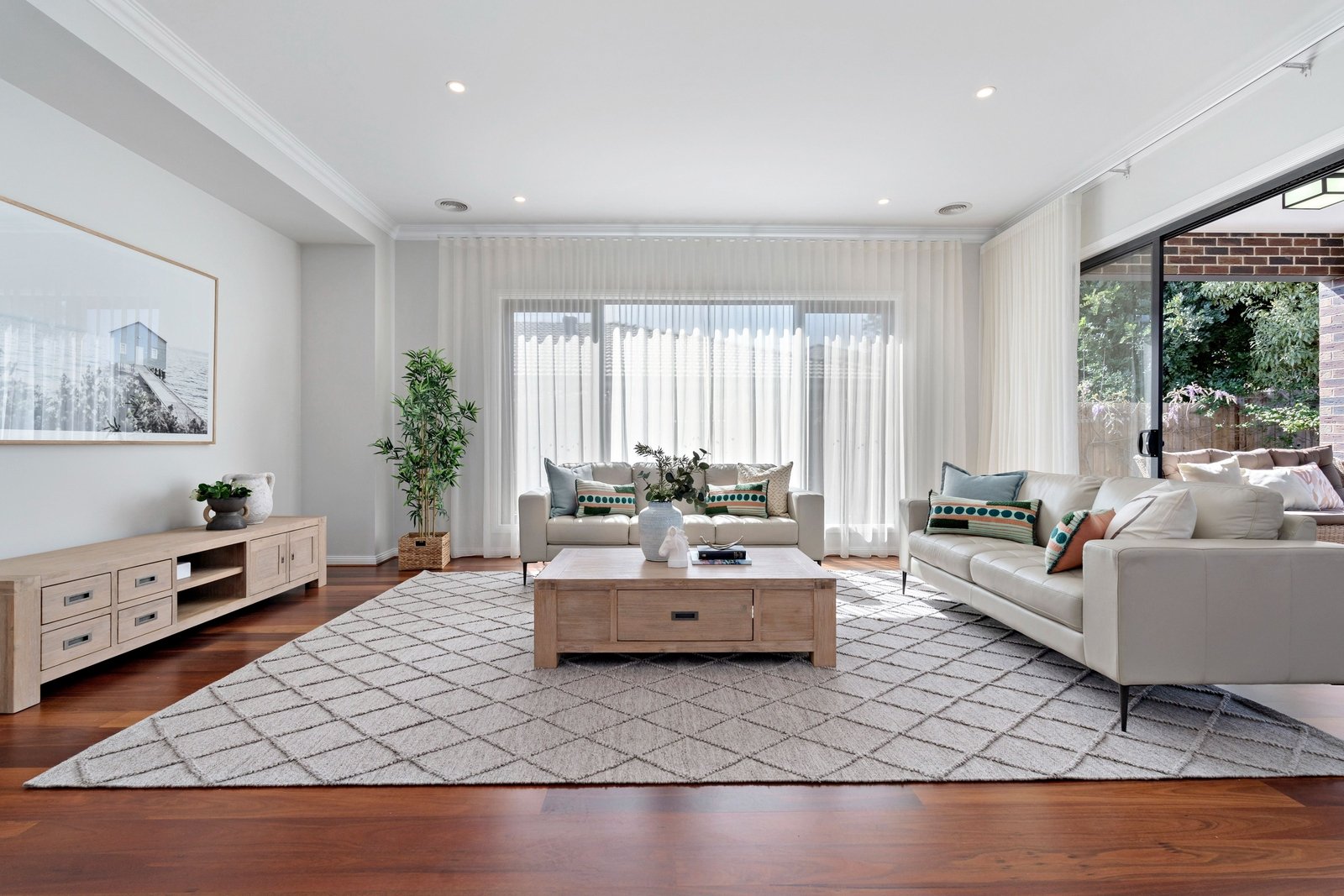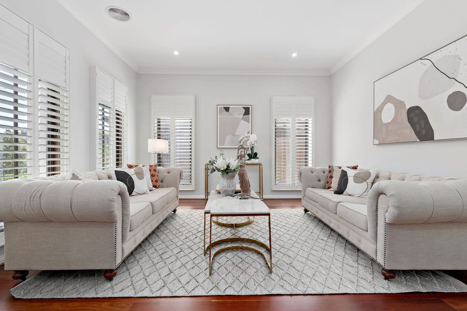 Beyond the lavender-lined bluestone walkway, a spectacular 59-sq (approx.) Signature Metricon awaits in a quiet court zoned for Brentwood Secondary College (STSA).