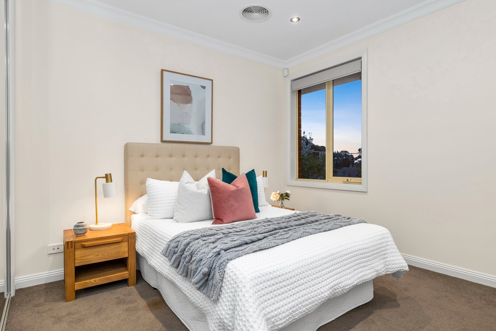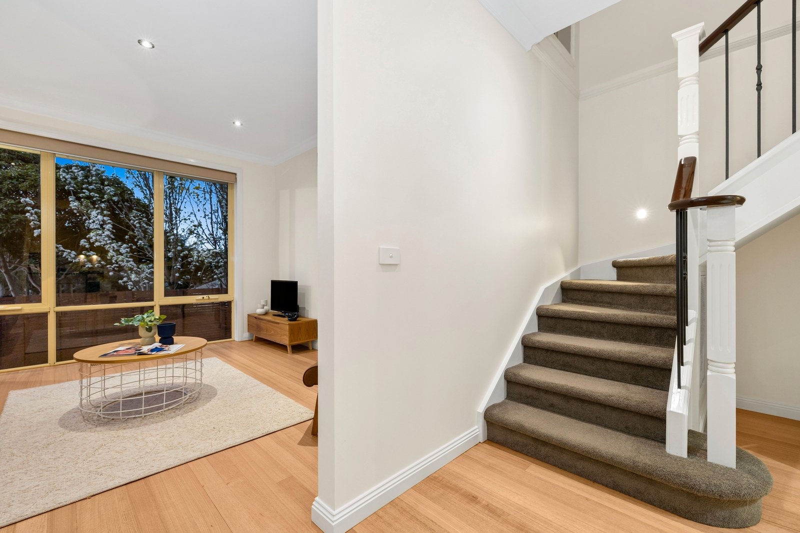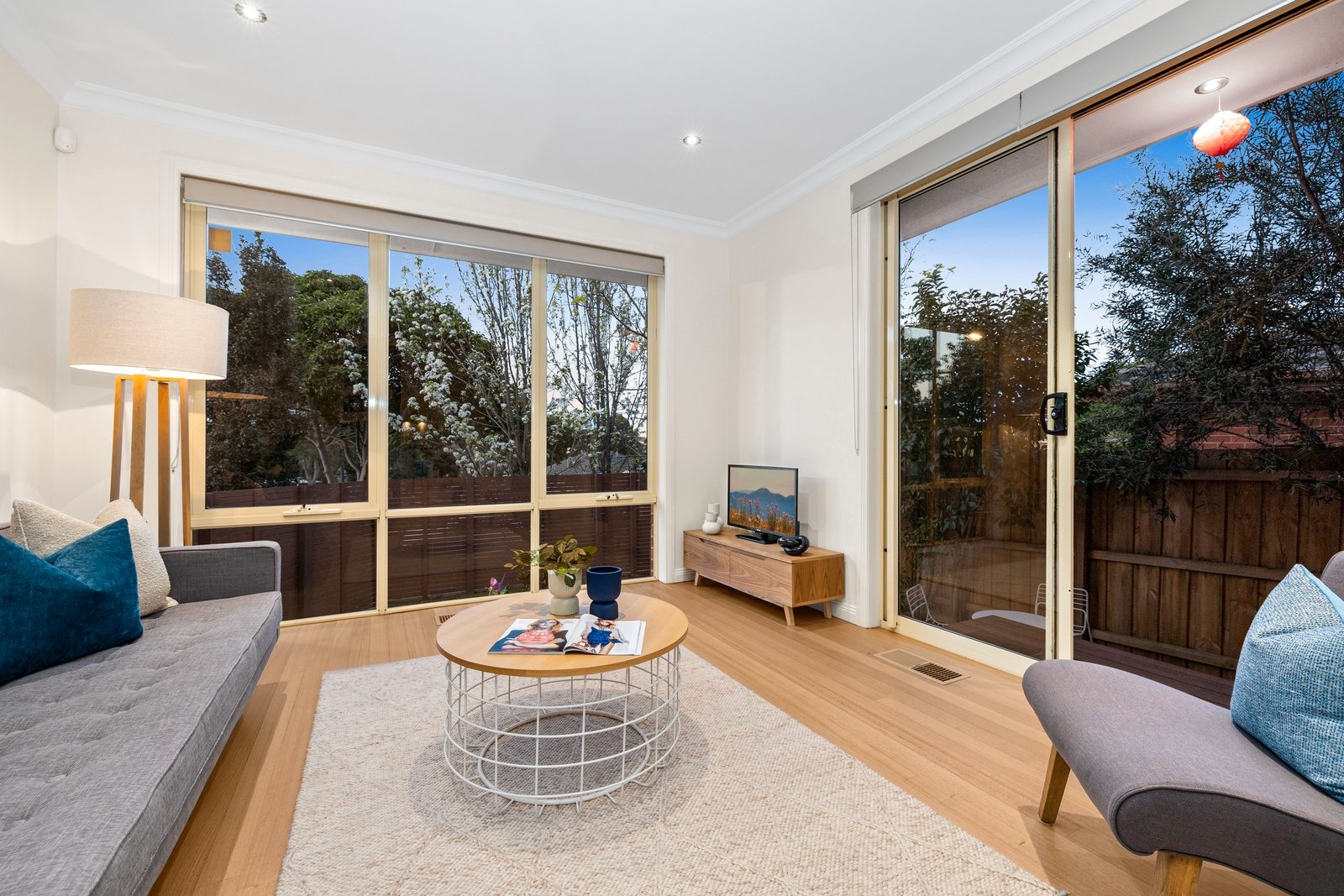 Exemplifying an unwavering commitment to contemporary, hassle-free living, this outstanding streetfront townhouse is certain to captivate the discerning tastes of both owner-occupiers and astute investors. Upon entry, interior spaces welcome you with neutral tones, pristine timber floors and a modern aesthetic, that permeates throughout dual living zones. A stunning north-facing lounge flows through to the well-appointed gourmet kitchen/meals area, luxuriously appointed with stone benches and stainless steel appliances. On the upper-level you will find 2 robed bedrooms filled with northern light, and both sharing a luxe bathroom. Premium extras include ducted heating, refrigerated air-conditioning, powder room, courtyard, single lock-up garage and off street car space (on title). Situated in the Box Hill High and Kerrimuir Primary zones, a stroll to Springfield Park, Box Hill Gardens, Our Lady of Sion College, the tram to private schools and the train into the city.