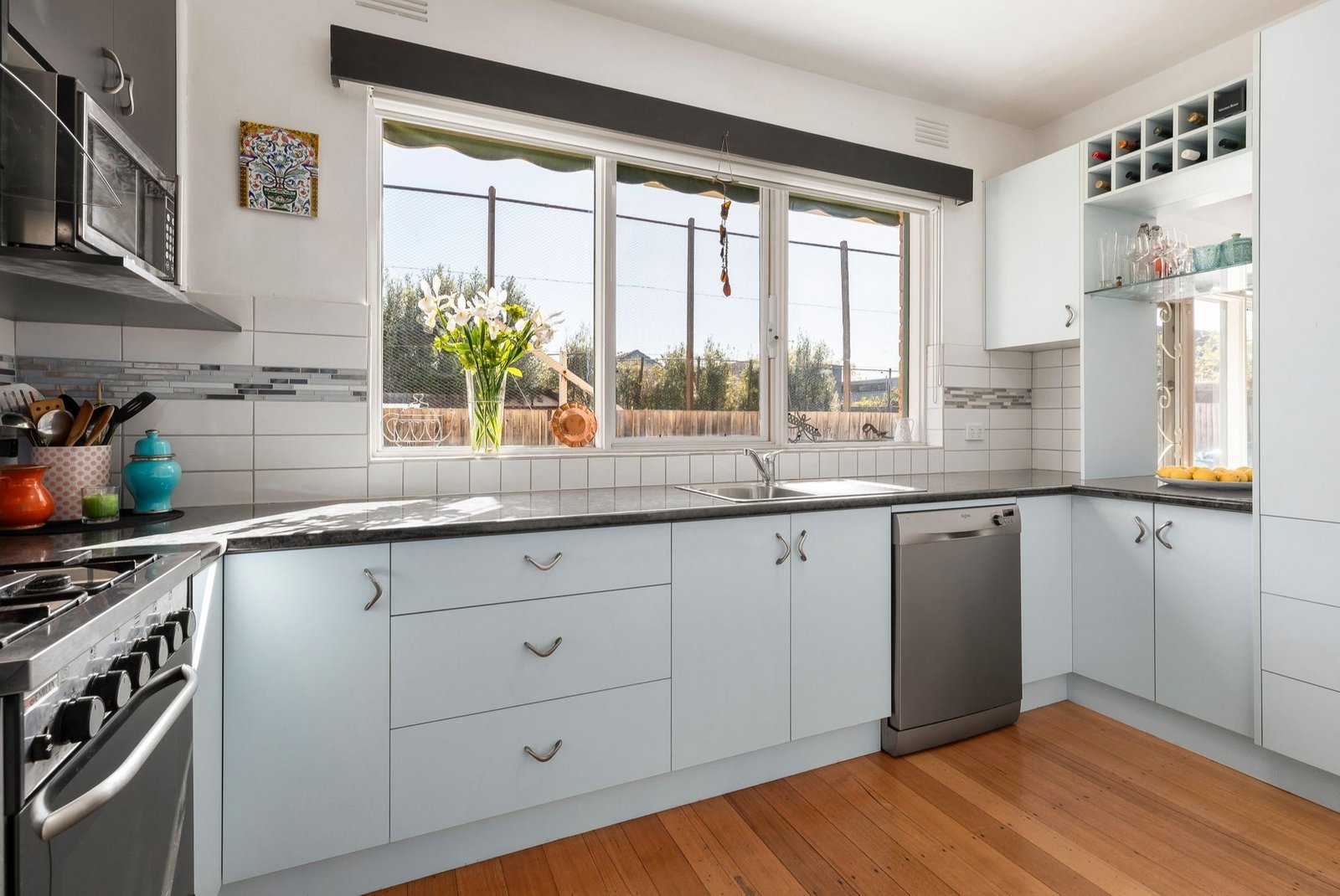 Both bedrooms are graced with built-in storage, main with a wall of robes, and picture windows looking out to leafy surroundings.