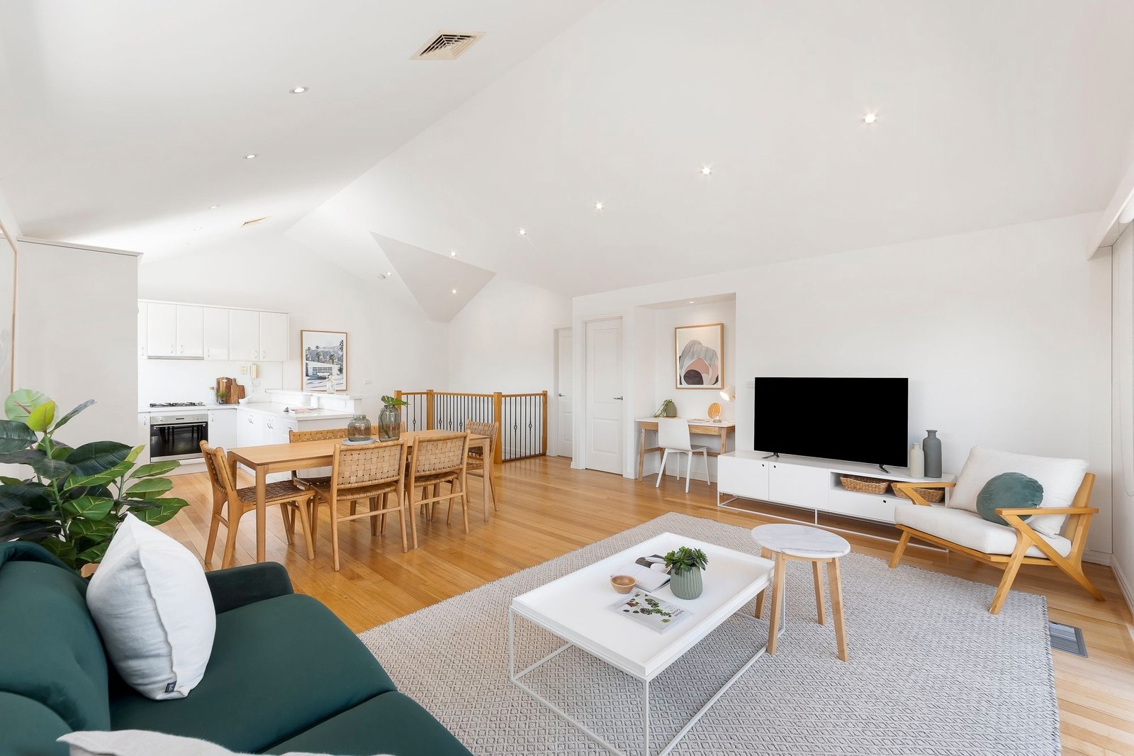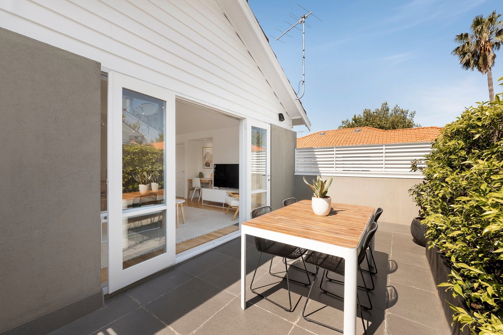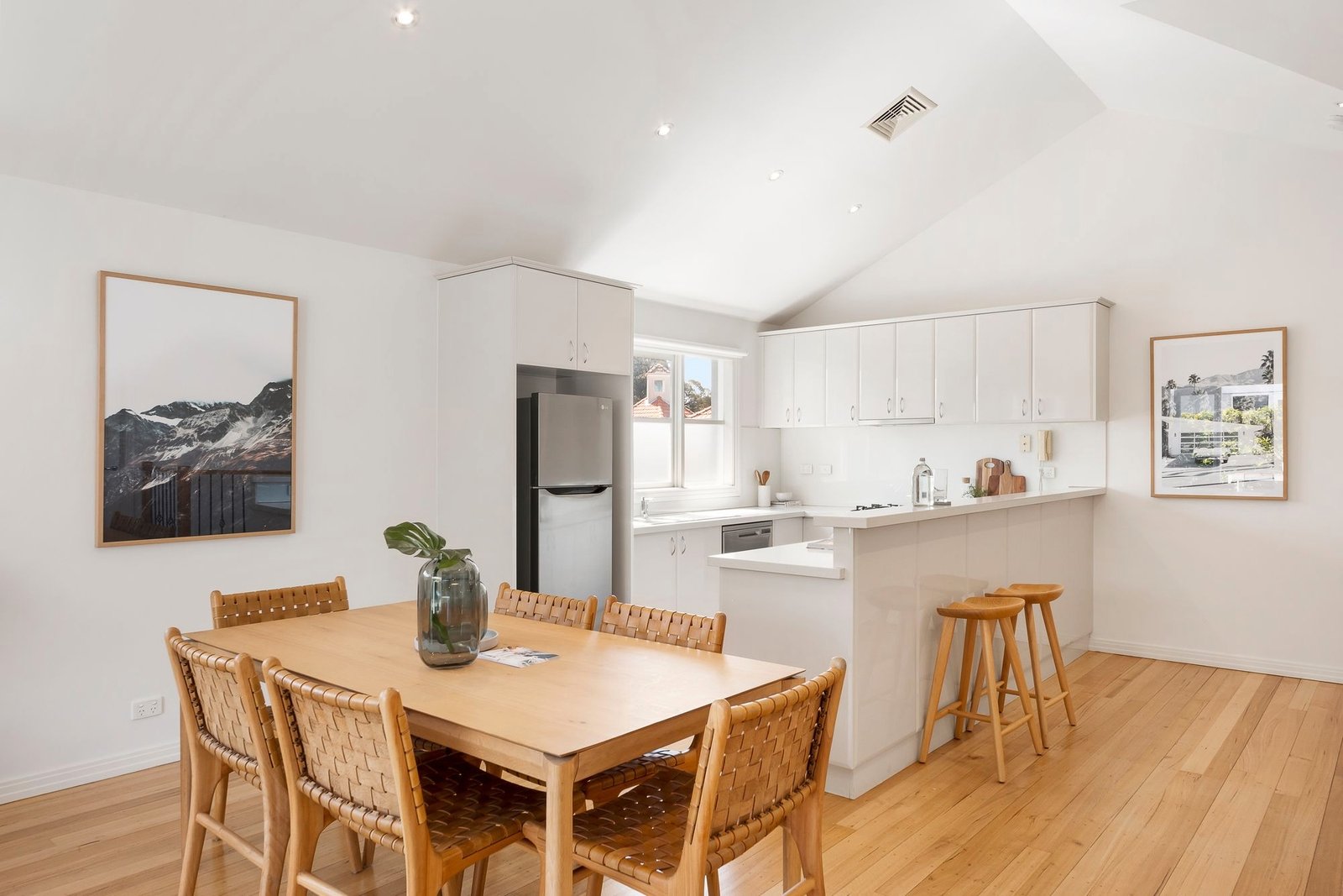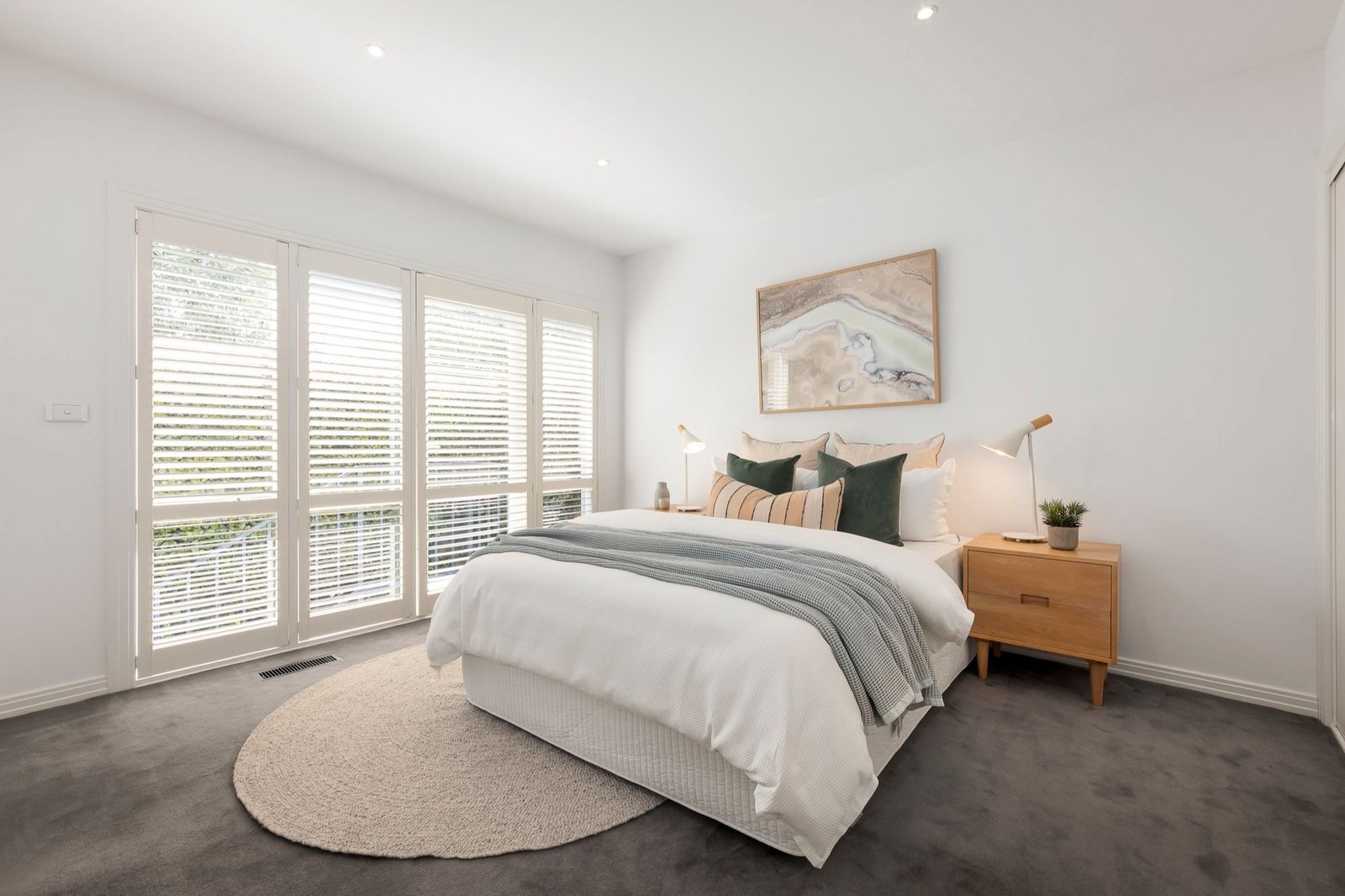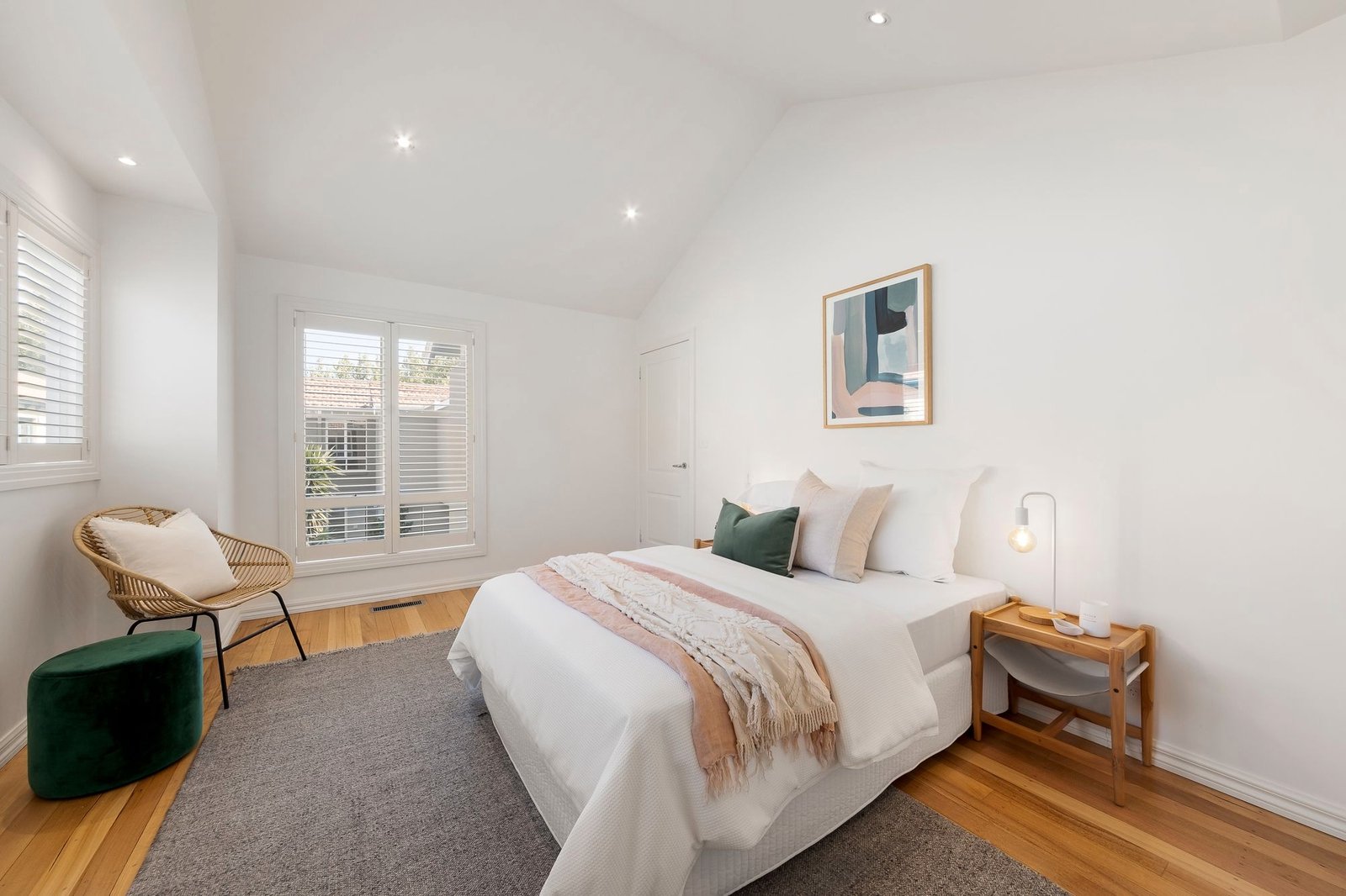 Nothing could truly be finer for families or low maintenance lifestyle seekers than this modern three bedroom townhouse in Elwood’s coveted Poets precinct. Full of abundant natural light in a manicured four only group, its beautifully spacious proportions host elegant, coastal style interiors in a peaceful, tree lined position just footsteps from School Park, Elwood Primary, Elwood College and canal walking and bike paths. Polished hardwood floors, high ceilings and glorious northern light define a two story floorplan where two ground floor bedrooms with extensive BIRs include the oversized main with ensuite, the other served by a cleverly designed family bathroom featuring independent shower, freestanding bath, excellent storage and full Euro laundry. Upstairs, a third bedroom with excellent BIRs accompanies a fabulous open plan living, dining and entertaining domain whose significant size is further amplified by a soaring ceiling and a wall of glazing opening to a secluded yet sun filled terrace. Further highlights include a family sized stone kitchen with Smeg appliances, ducted heating/ cooling, plantation shutters and remote double garage. Move straight in with not a thing to do just but enjoy the relaxed Elwood lifestyle. Stroll to the schools, the beach and foreshore reserves, Ormond Road Village, buses, trams and more.