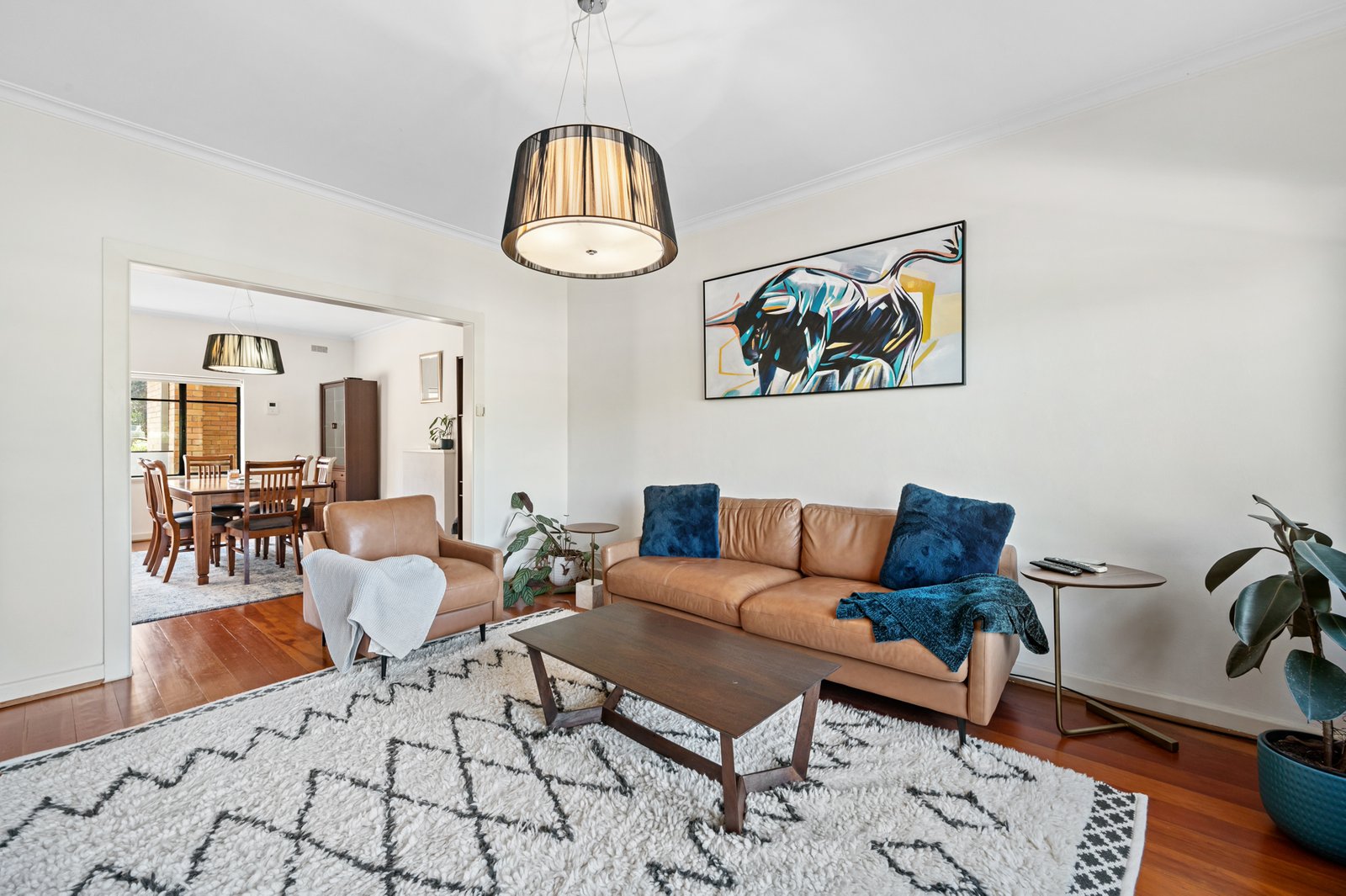 - Adjoining living and dining rooms of house-sized proportions