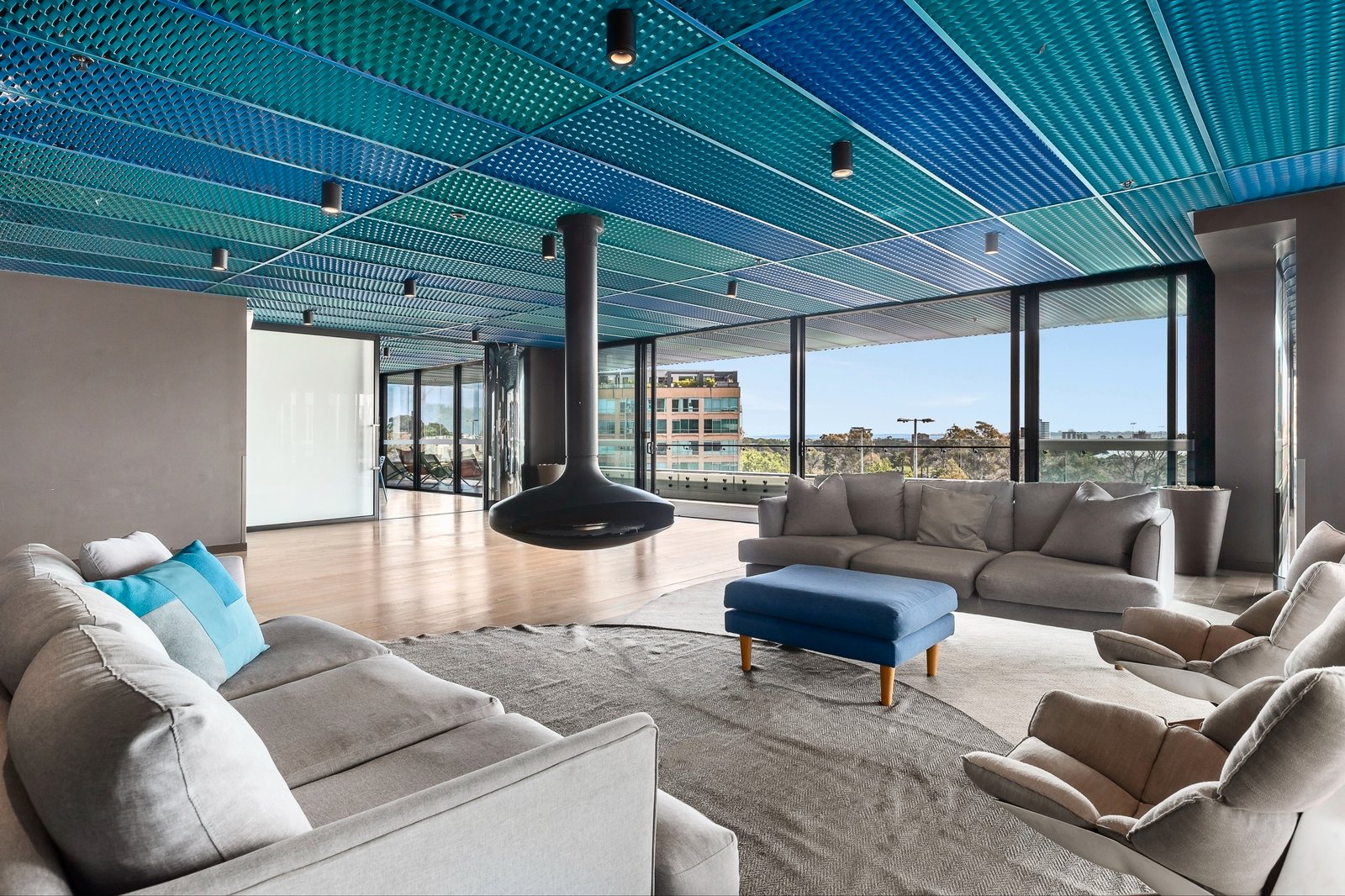 With access to a luxe communal lounge boasting a feature fireplace, wine lockers and TV, residents can also make use of the BBQ terrace, dining room and air-conditioned gym.