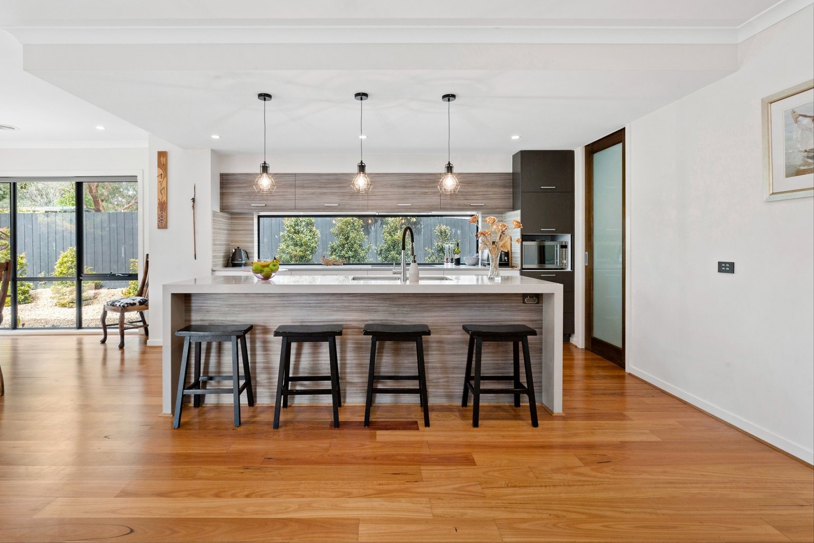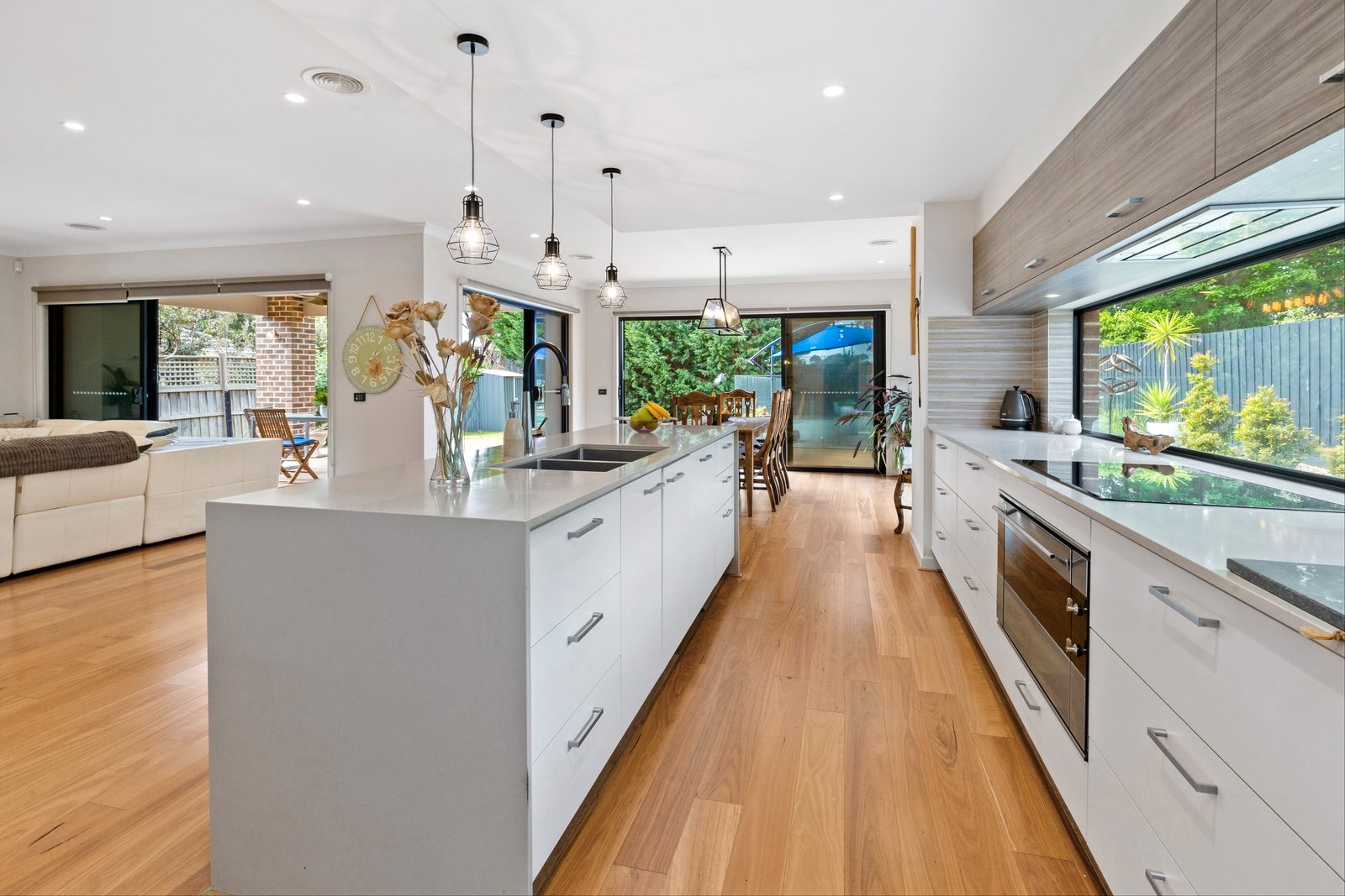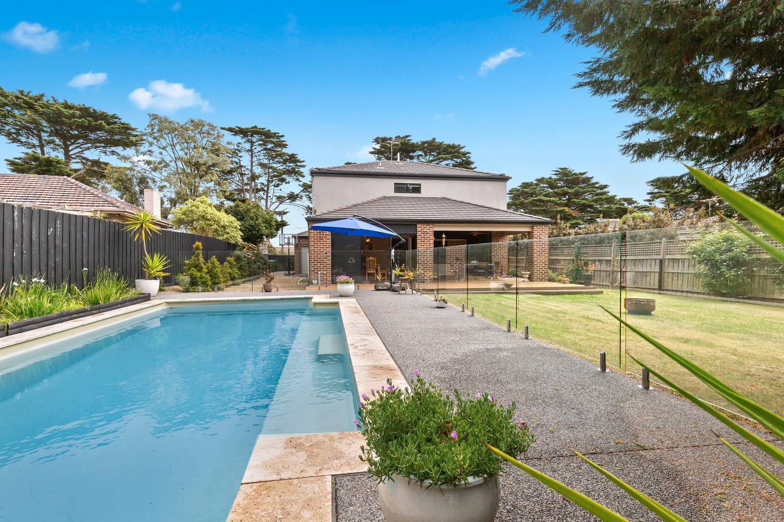 Banks of sliding stacked doors off the primary living and dining areas glide open to a wraparound alfresco deck with both covered and sun filled spaces to relax. Hosting with barbecue outdoors, making every weekend count, while the inground swimming pool is set to form the backdrop of endless summers to come.