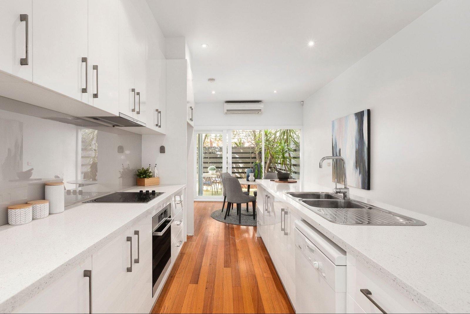 A wall of glazing slides back to a private landscaped courtyard with pedestrian access to Bell Street at the rear.