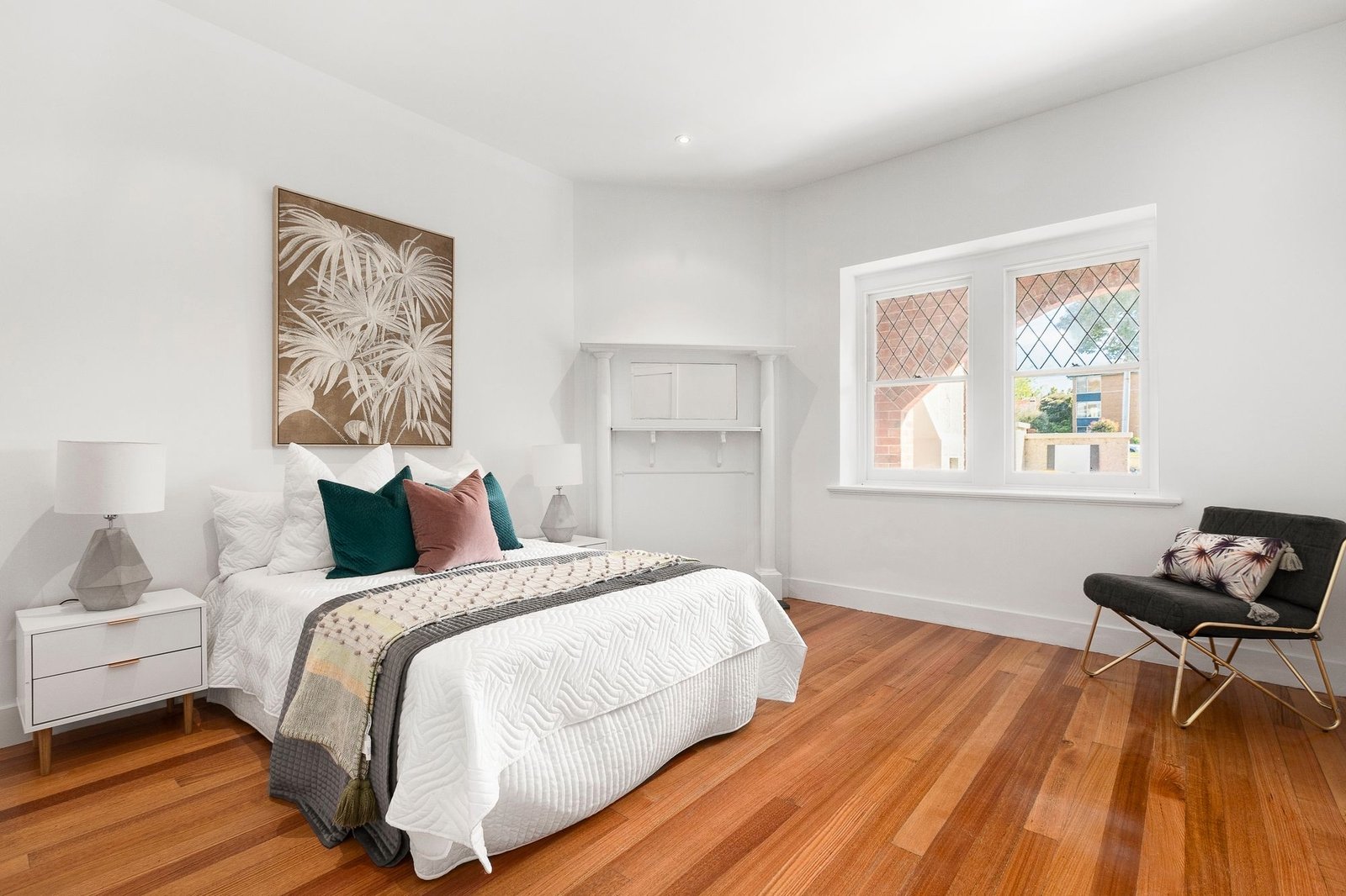 Set back behind a rich arched brick façade, natural light floods its generous proportions, illuminating two separately zoned living areas that bookend a stone-finished entertainers’ kitchen with Miele appliances.