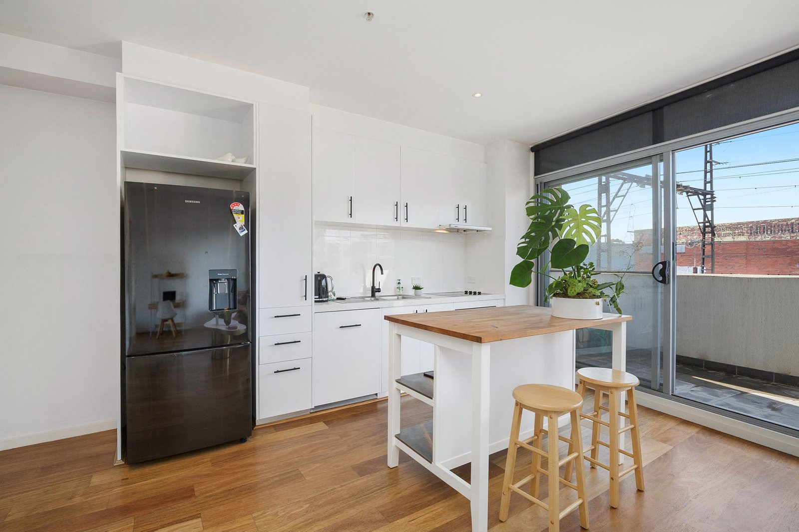 - Spacious living / kitchen area with access to private balcony