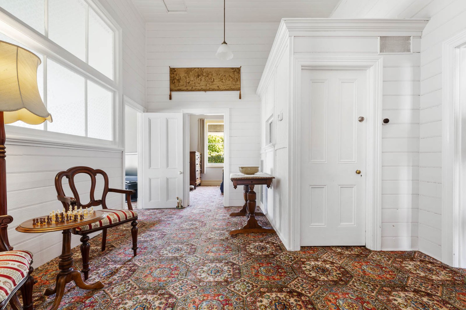 As you enter, the warm and welcoming front entry leads you into a spacious hallway, where you'll discover two grand-sized bedrooms at the front of the house. Follow down the hall, and you'll find more bedrooms along with a formal lounge, complete with exquisite fireplaces and mantles. The feature ceilings and ornate cornices add a touch of grandeur to the space. Additionally, there's an informal living room with a gas space heater, perfect for cozy evenings with family and friends.