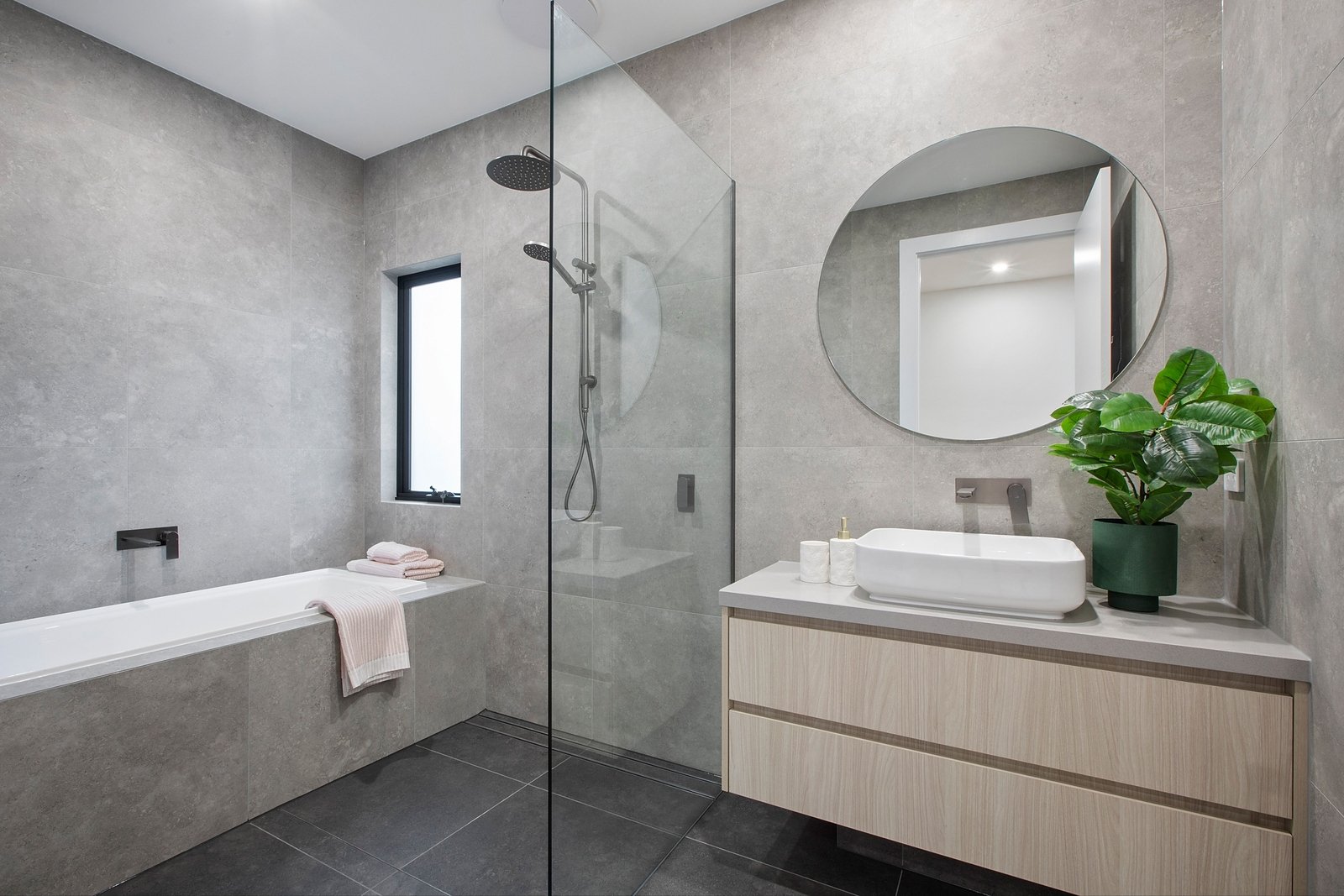 Choose an ensuite master bedroom downstairs, or the upstairs suite, while the kids get their own room with their own robes. Relax in the bathtub or create a spa experience in the floor- to-ceiling tiled ensuites.