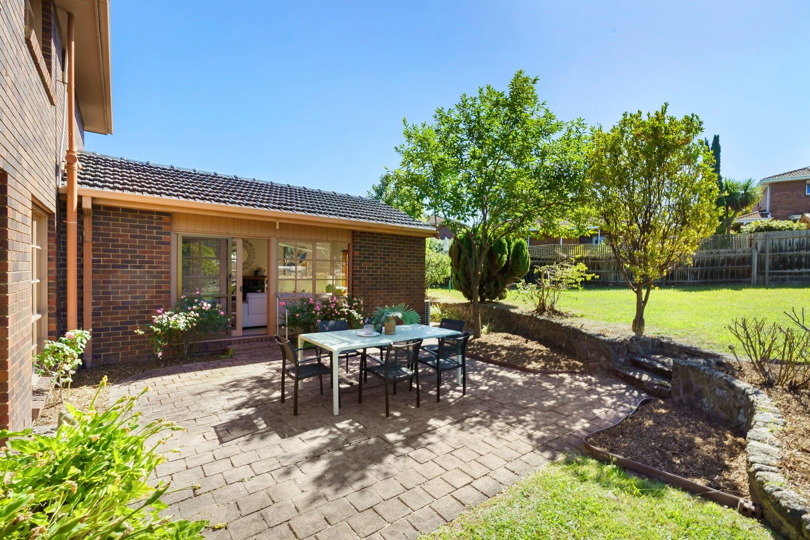 Summer entertaining is a breeze with a lovely big backyard – with cricket sized lawn and a paved area perfect for an outdoor dining table.