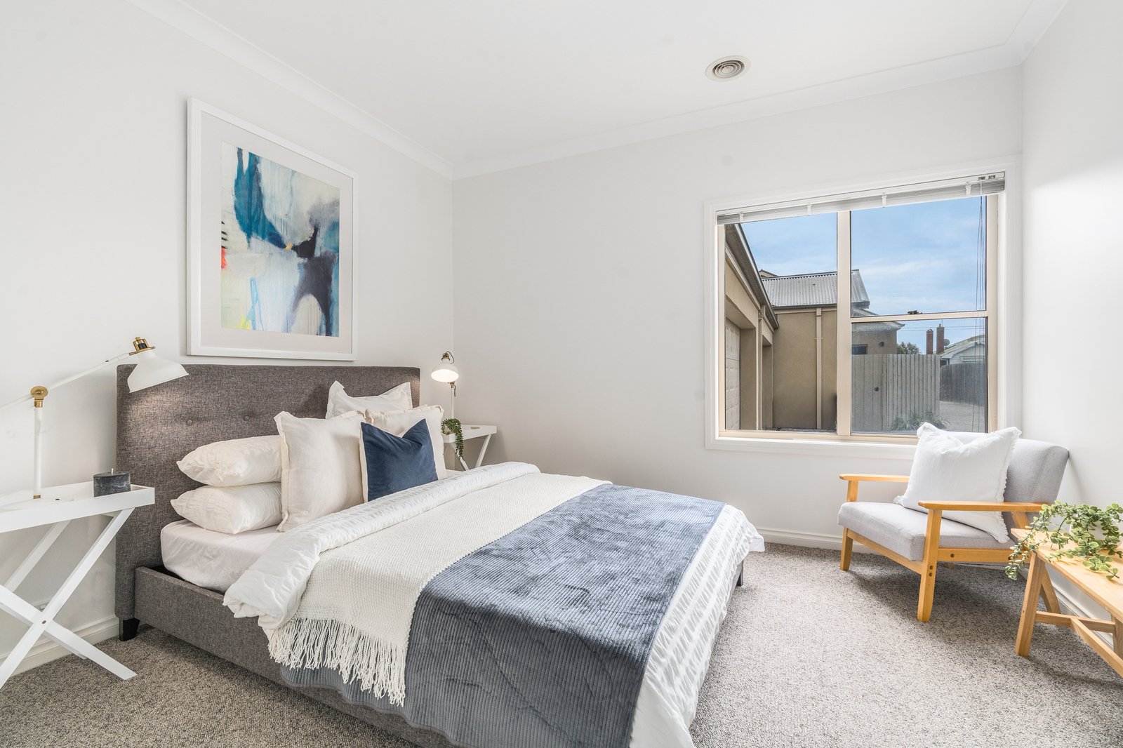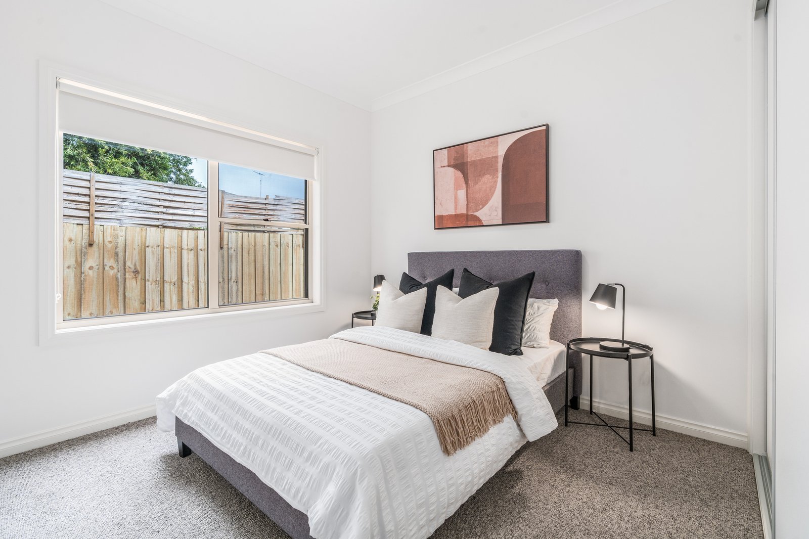 Comprising three bedrooms with new carpet, the master features walk-through robes and ensuite. Two further bedrooms include built-in robes and are serviced by a central bathroom and separate wc. Both bathrooms are tastefully presented in a neutral palette featuring modern vanities with stone benchtops, quality fittings and finishes.