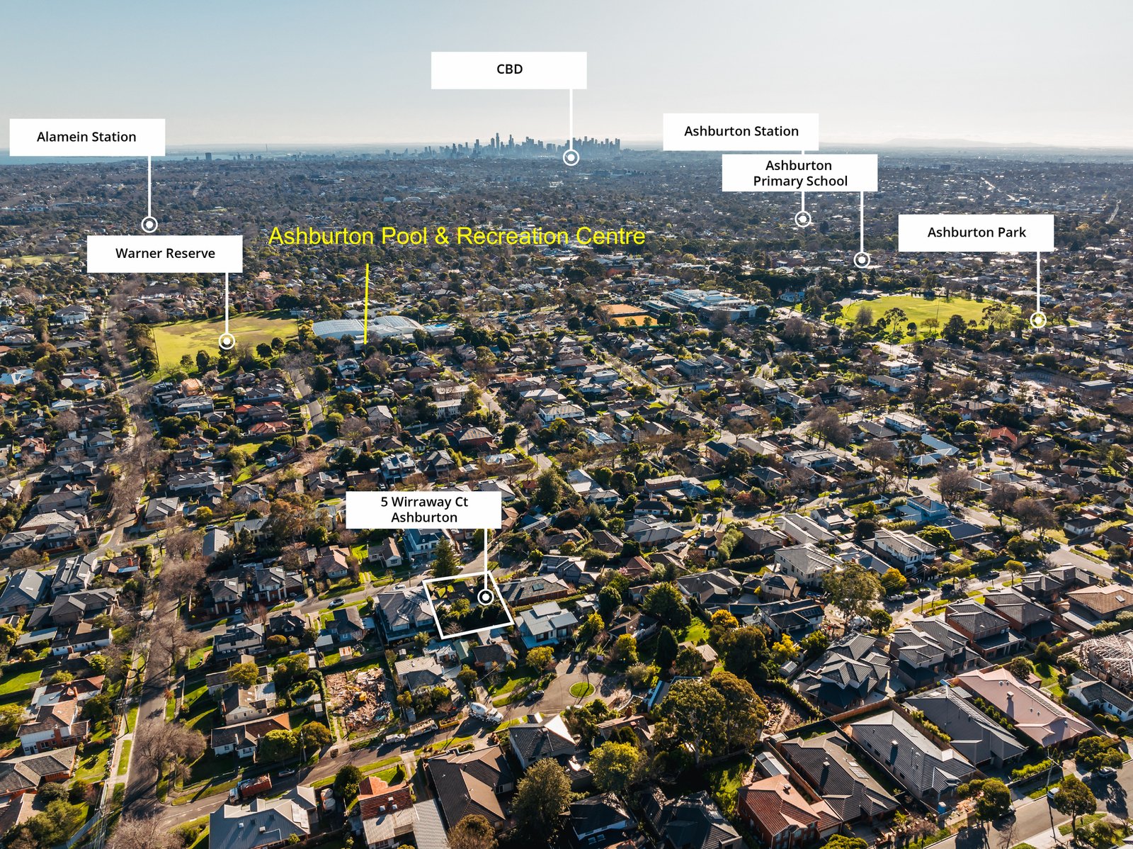 Located in a quiet cul-de-sac near Warner Reserve, the home is close to parks, Ashburton Village, transportation, and schools. You can walk to the Alamein train line, bike trails, Ashburton Recreation Centre, and Ashburton Shopping Village. A quick drive takes you to Chadstone Shopping Centre and freeway access.