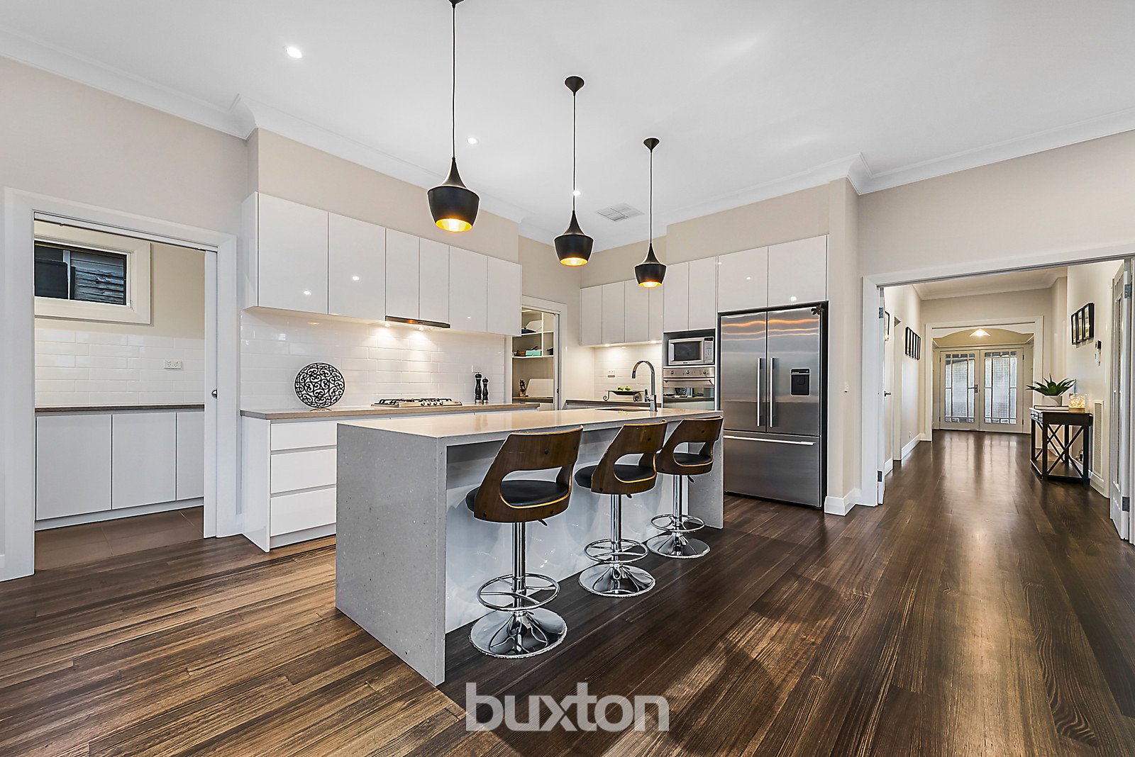 Surrounded by beautiful landscaped gardens, this mesmerising Californian Bungalow harmoniously blends period integrity with sublime renovated/extended modern style. Intricate decorative ceilings add timeless character to light-filled interiors, where a spacious open plan living/dining zone and bespoke kitchen (Caesar stone surfaces, Smeg appliances and walk-in pantry) unfold outdoors to a covered alfresco - perfect for all-season entertaining. A sumptuous main bedroom with dressing room, bay window and luxurious twin ensuite, is complemented by 3 additional bedrooms, chic dual-vanity bathroom, GDH, evaporative cooling and off street parking. Absolutely irresistible, this completely transformed domain is a pleasant walk to Sacred Heart, Hughesdale Primary, Oakleigh Grammar, Zone 1 train station and thriving Eaton Mall.
