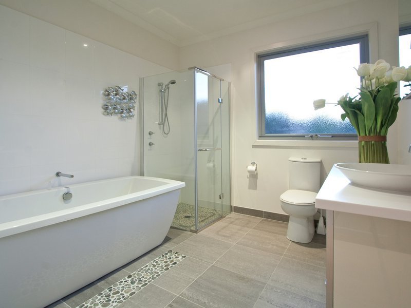 The spacious entrance level comprises a sunny study or fifth bedroom facing Gulls Way, an entertaining area, plus three comfortable, carpeted bedrooms. Each has built in robes, double roller blinds for privacy and close access to a light-filled state-of-the-art bathroom with free standing tub, shower and toilet.