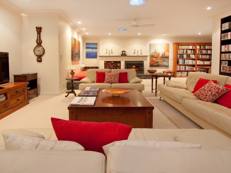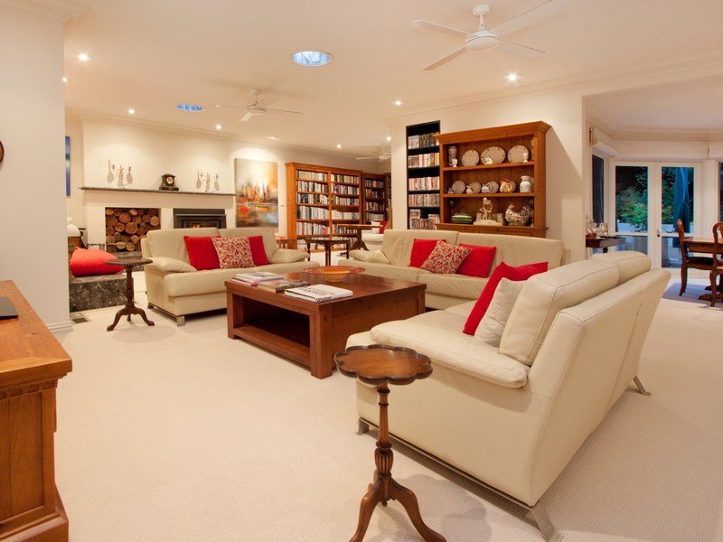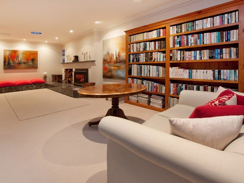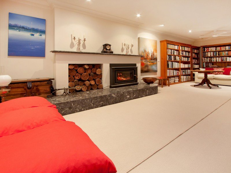 The heart of the home is a vast open-plan lounge and library that basks in the glow of a huge slow combustion heater, while both formal and casual dining areas have double doors spilling out to a paved alfresco courtyard and tranquil garden surrounds.