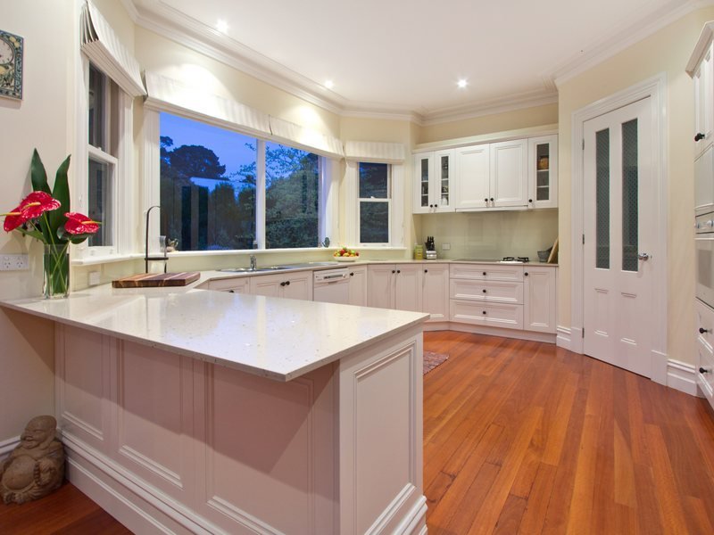 With beautiful Sydney blue gum flooring under foot and tall 10ft ceilings overhead, the home also includes a superb kitchen with beautiful stone benchtops, walk-in pantry and european appliances, a family bathroom with a soothing spa bath, guest bedroom with two-way ensuite and a three-car garage.