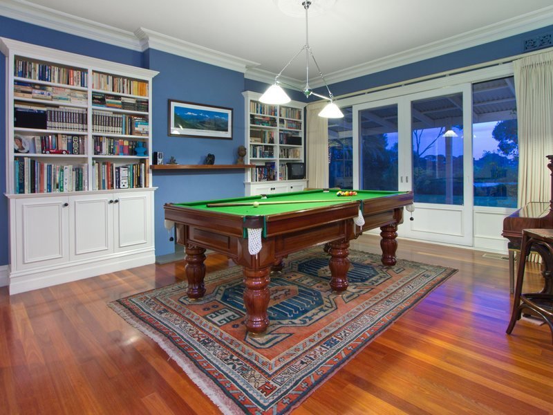 Parents enjoy fabulous privacy on the upper level including a large reatreat lounge with a limestone fireplace and doors to a covered balcony with spectacular views over the grounds to the sparkling lights lining the Frankston coastline.