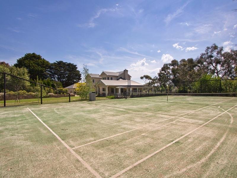 With a long driveway that circles a giant Canary Island palm, the five-bedroom home has a design that is as functional as it is spectacular featuring three living areas serving separate wings, four fireplaces, grand formal dining, a den and concertina doors that open to a terrace overlooking the gardens, pool and north/south facing tennis court.