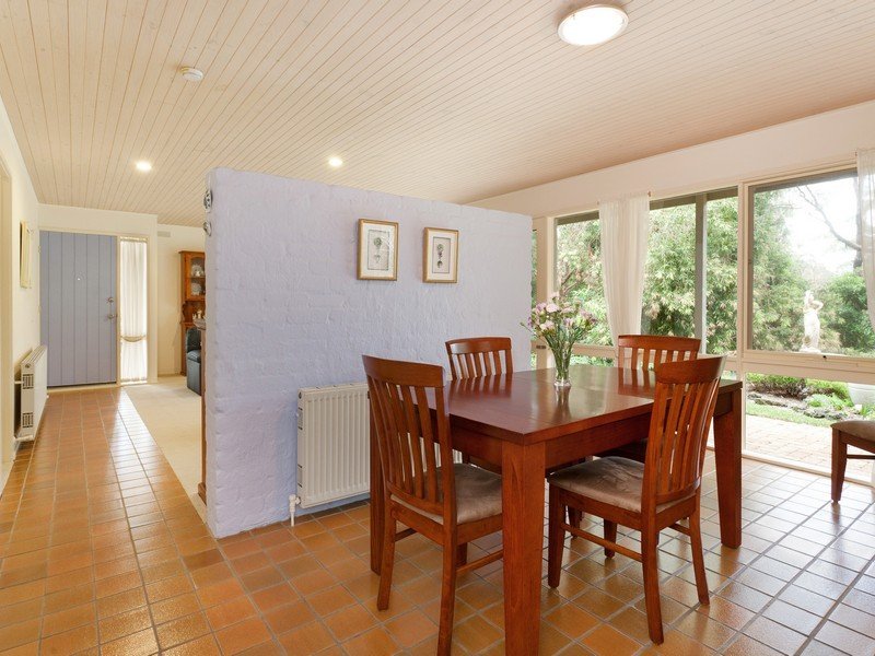 Surrounded by long verandahs and with banks of windows framing the stunning gardens, the formal lounge and dining rooms connect with the natural surrounds using timber lined ceilings, and original quarry tiles and soft carpet under foot, while the galley-style kitchen shares space with an open plan meals area and family room, both with doors to a verandah and covered entertaining area with BBQ.