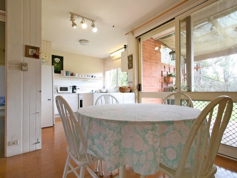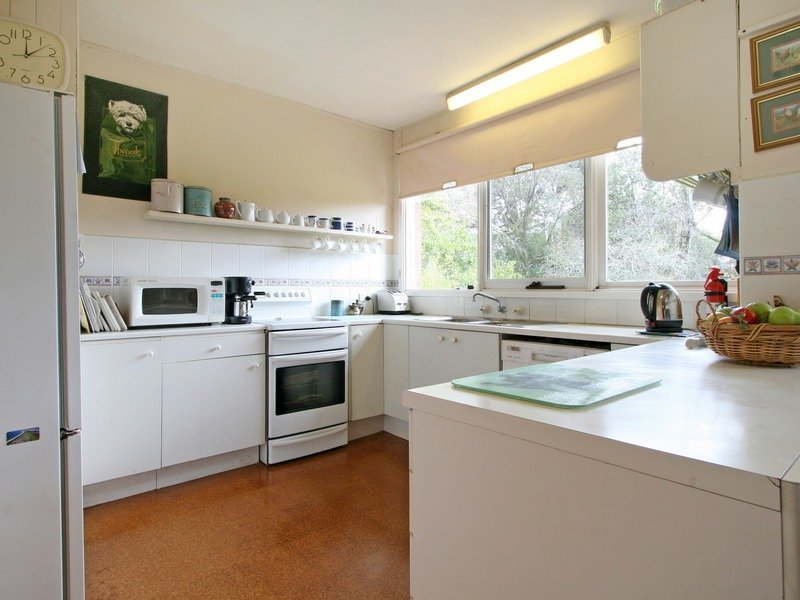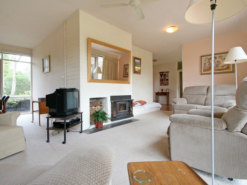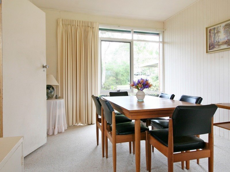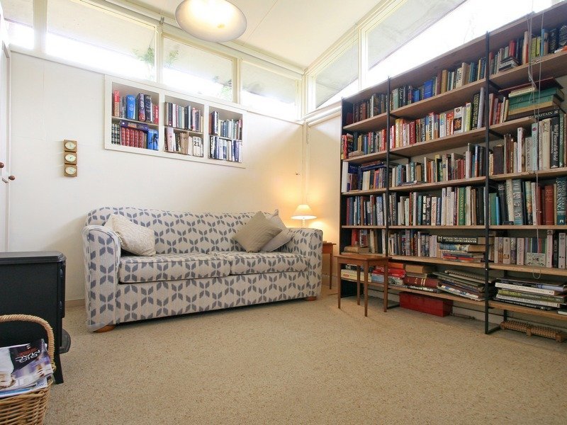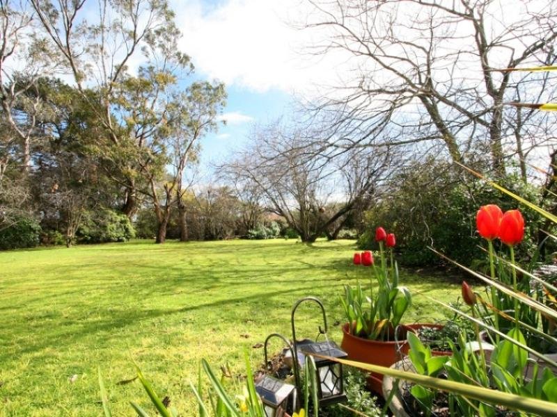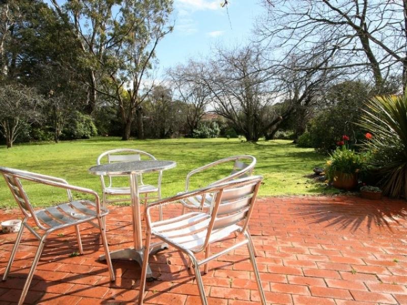 A simple design that takes best advantage of the garden surrounds, the home includes a lounge and dining room with a wood heater and doors to a terrace covered in stunning ornamental grape vines, a library or TV room, well equipped kitchen and meals area also opening to the terrace and three good-size bedrooms.