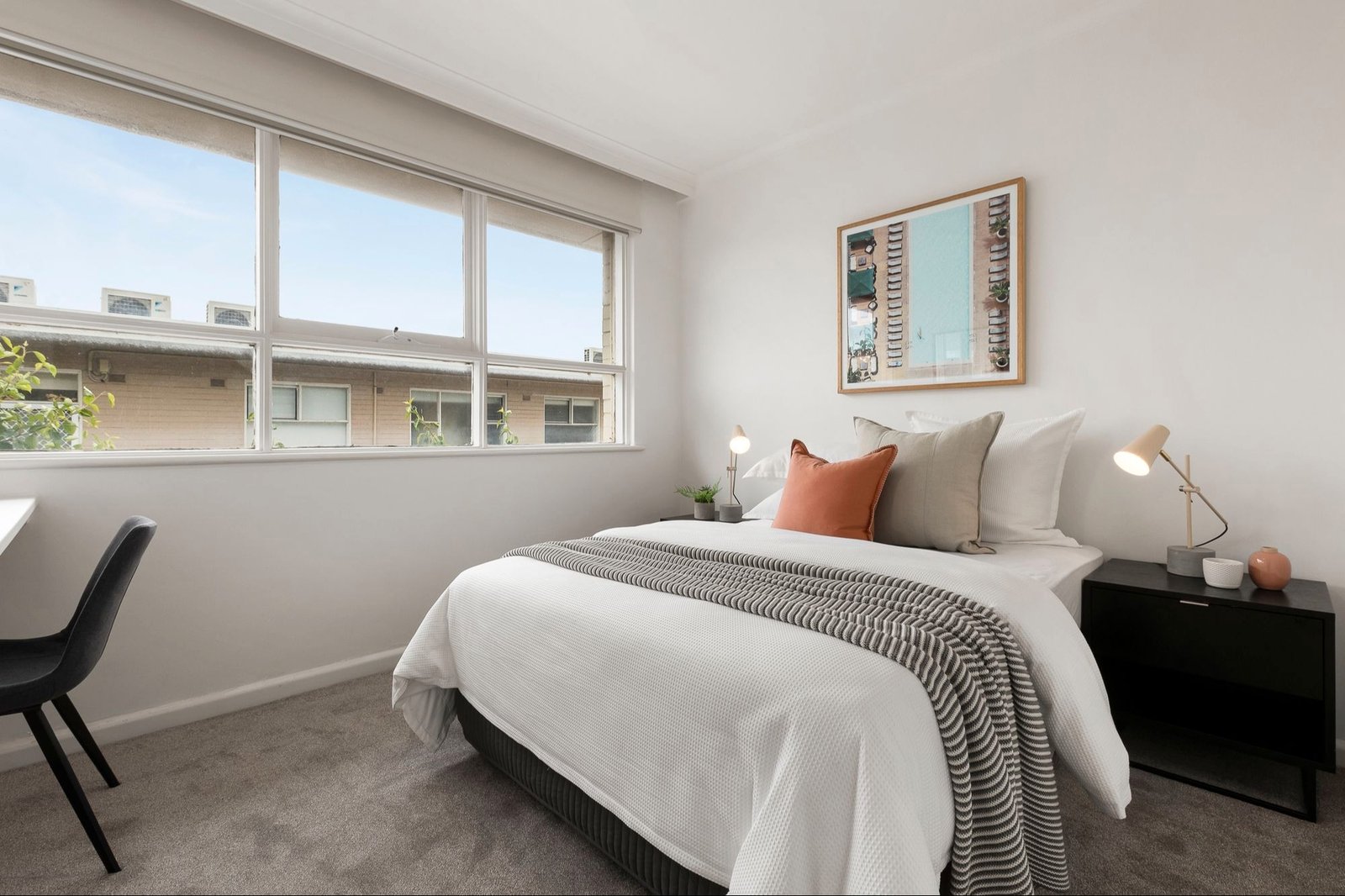 This superbly styled apartment offers a stand-out opportunity for a young professional seeking a first home or for the retiree looking to downsize. Generously proportioned, this 2-bedroom home has been extensively and skilfully renovated in a chic, contemporary style, which is walk-in-ready. Both well-sized bedrooms benefit from floor-to-ceiling built in robes and are freshly carpeted (second bed with built in desk). The generous living/dining domain, with its private balcony and leafy outlooks, adjoins the sensational house-sized gourmet kitchen with ample storage and café style breakfast bar. A beautifully renovated bathroom with a large, modern shower and bath. Solid floorboards throughout, separate toilet, reverse cycle heating/cooling, and aesthetic lighting all provide added appeal to this contemporary and functional apartment. This peaceful, inner-city sanctuary enjoys morning and afternoon light and is enhanced by secure off street parking, security intercom and a small welcoming block of only 12. All this provides a beautifully appointed home that will be a joy to return to after exploring all the lifestyle delights of nearby Elwood Beach, Ormond Road Village and Elsternwick Park.