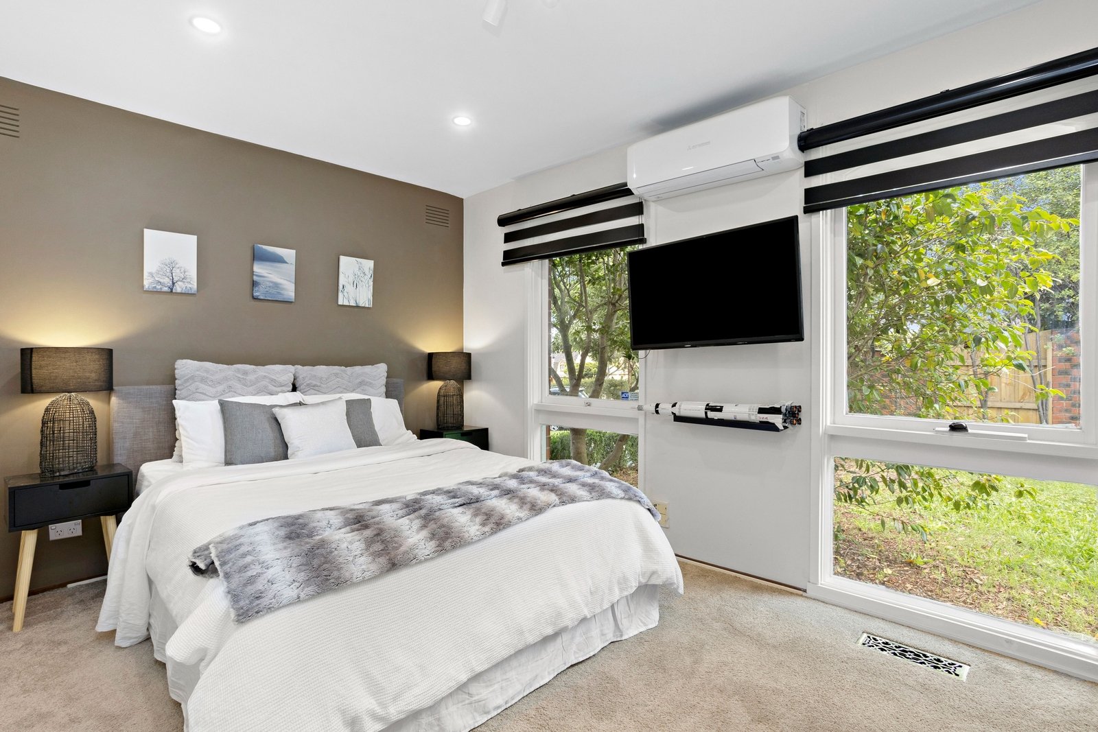 THE PROPERTY Exceptionally located mere steps away from Jells Park Primary, Caulfield Grammar and the picturesque Jells Park, this enticing family residence on a generous 655 sqm (approx.) low maintenance block offers a wonderful opportunity to secure your future. Privately positioned behind a modern brick fence along the service road, the home is instantly inviting, with a sunken living and dining room framed by garden views providing a welcoming entrance. Flowing through to the central kitchen and meals domain, a gas log fireplace sets the tone for relaxation, with the vibrant modern kitchen complete with glass splashbacks, stone countertops, dual oven and pendant lighting sure to excite the resident gourmet. Vast and versatile, the rear family room offers easy access, through a large sliding door, to the covered alfresco, where views out to the Dandenong Ranges provide the perfect backdrop for outdoor entertaining. Accommodation is abundant with the luxe main bedroom flaunting walk-in robe and ensuite, while two further bedrooms include built-in robes, with an optional fourth bedroom or study. THE FEATURES Spacious 4-bed, 2-bath family home Master bedroom flaunts walk-in robe & sleek ensuite Two further bedrooms include built-in robe storage Elegant main bathroom with rain shower & deep-set bathtub Large covered alfresco with mountain views, perfect for entertaining Double carport, off-street parking & garden shed storage Ducted heating & split system air conditioning for comfort THE LOCATION Resting in a prime position just a stone's throw from the trails of Jells Park, within walking distance to Jells Park Primary, Caulfield Grammar School, Wheelers Hill Shopping Centre, Monash Gallery of Art and Library. Public transport at your doorstep and the Monash & Eastern freeways all easily accessible, making travelling further afield a breeze.