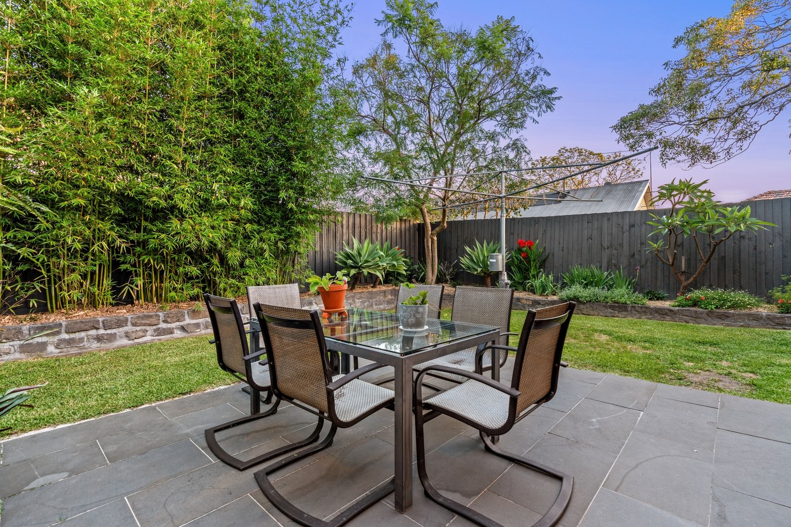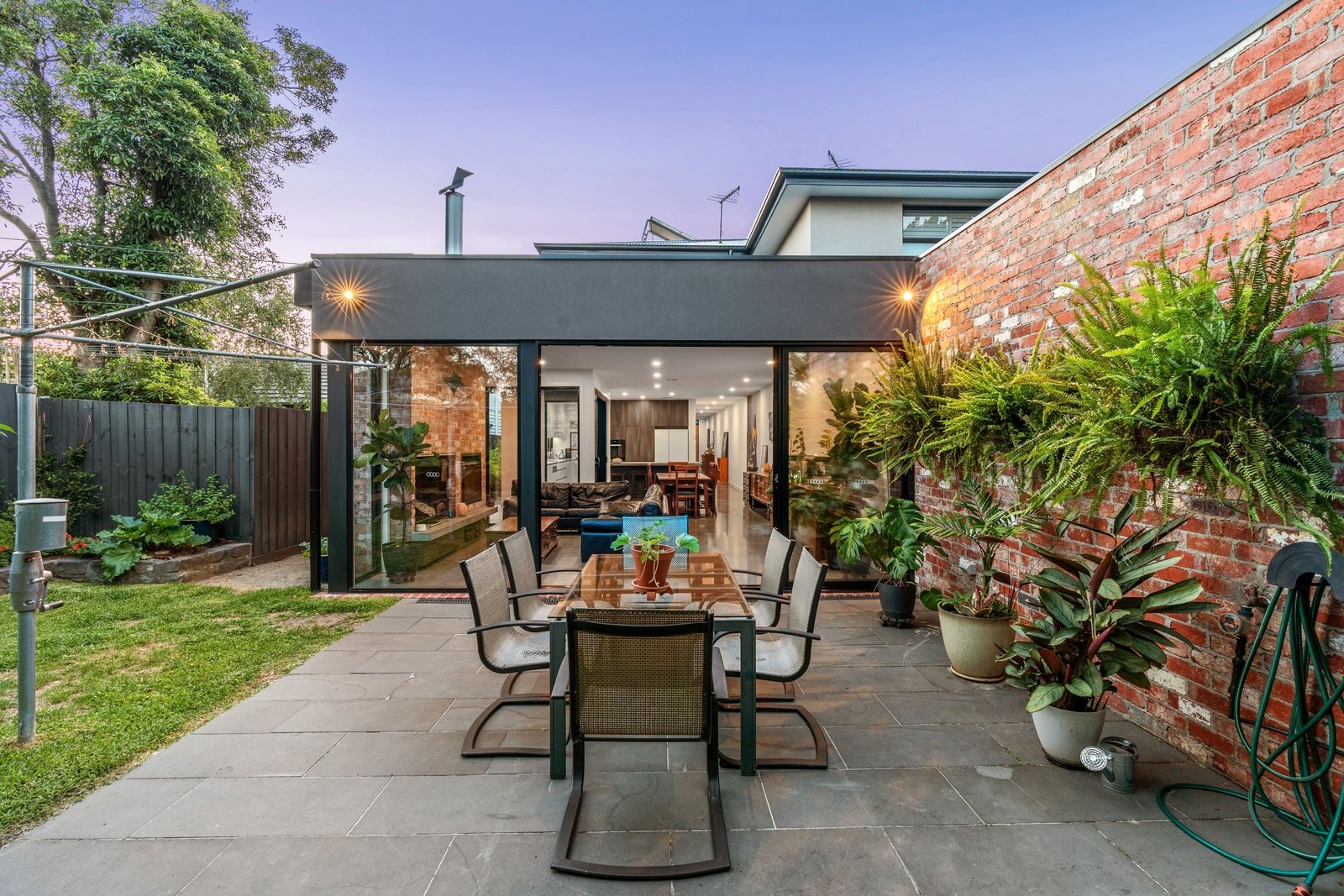 Making a unique statement with a premium Jetmaster fireplace in a recycled brick wall and timber-slats enclosing the stair, this architectural home is meticulously appointed; with ducted climate-control in addition to in-slab hydronic heating, video intercom plus Bosch alarm, and energy-efficient solar hot-water. Even the outdoors have a unique edge with two-car parking including an auto-garage, and an extended rear garden with jacaranda and frangipani trees retained from the original grounds.