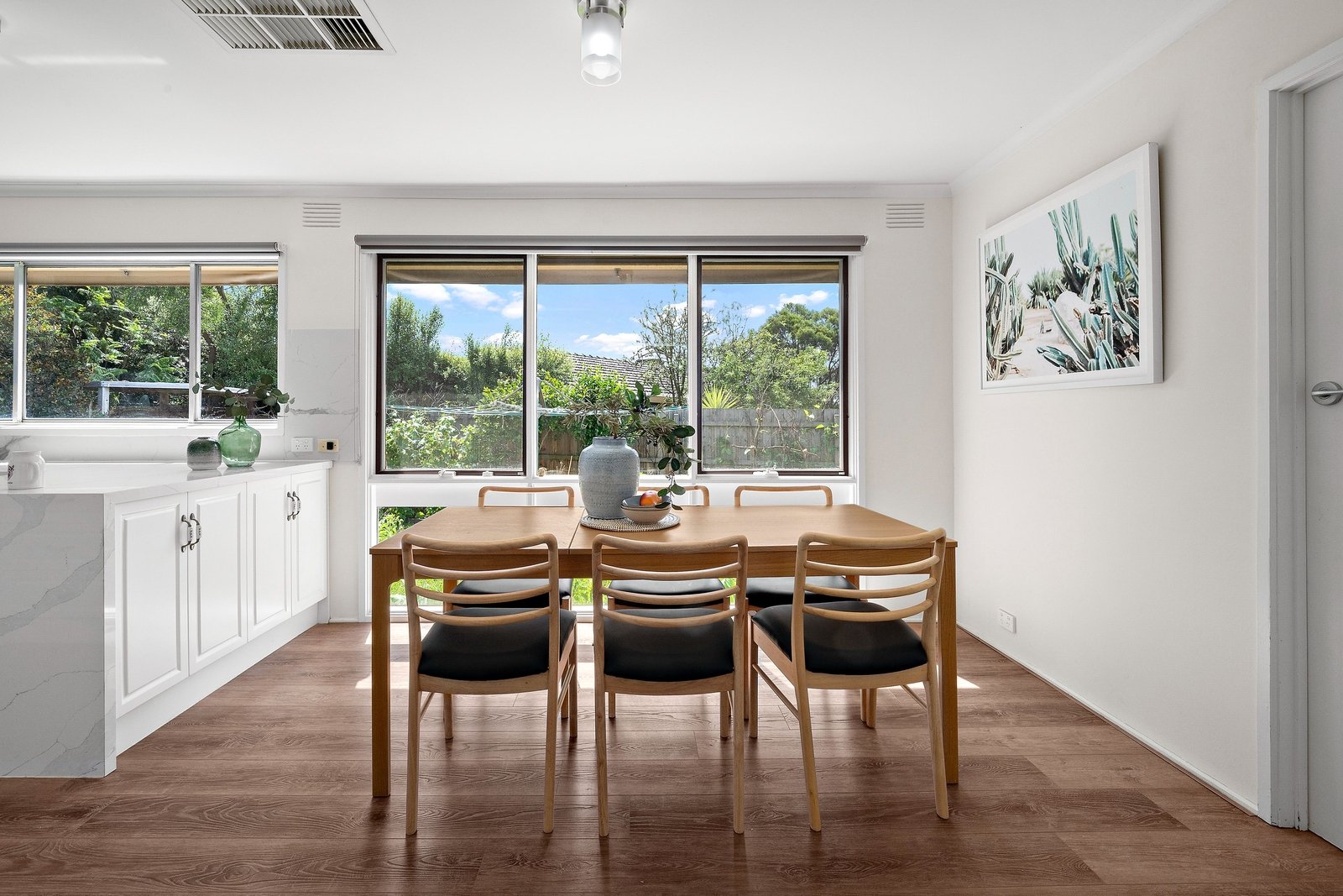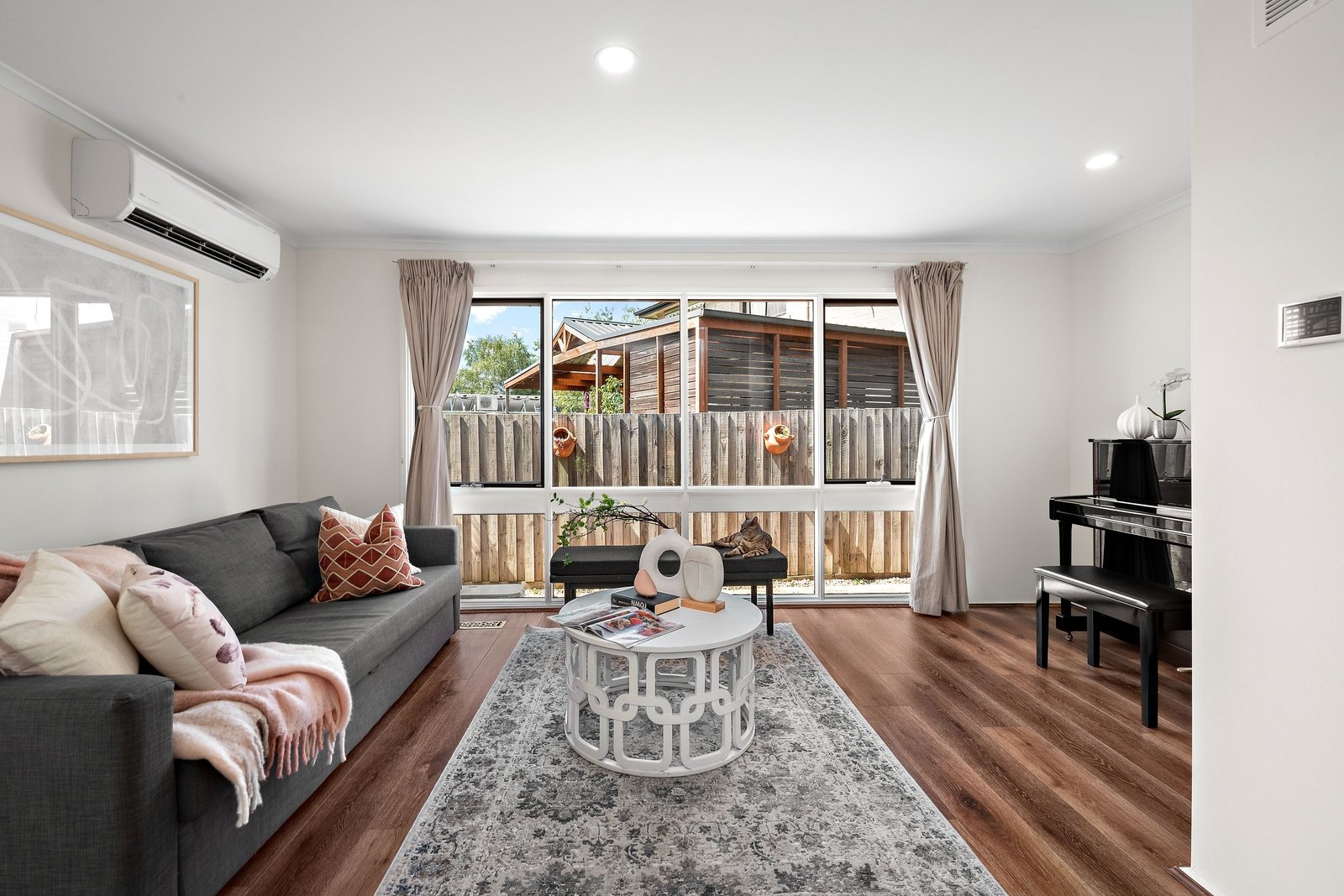 For energy efficient heating and cooling, a 6.6kw solar array powers the split system units, with additional central heating, a double garage and extra driveway parking.