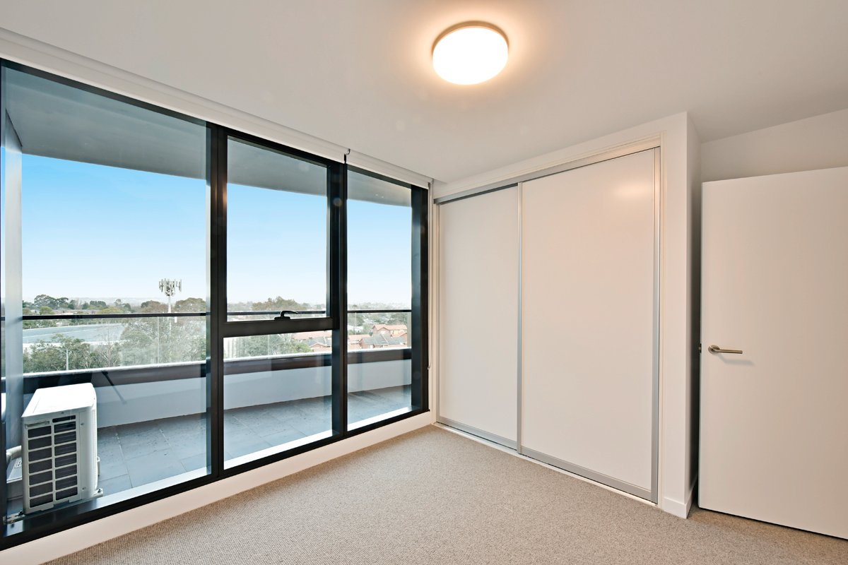 Apartment features include floor to ceiling windows, plush carpet in bedroom, stone kitchen benchtops, stainless steel appliances and induction cooktop, European laundry, easy access to common areas located on level four, district and CBD views, double glazed windows, split system heating and cooling, roller blinds and secure intercom access.