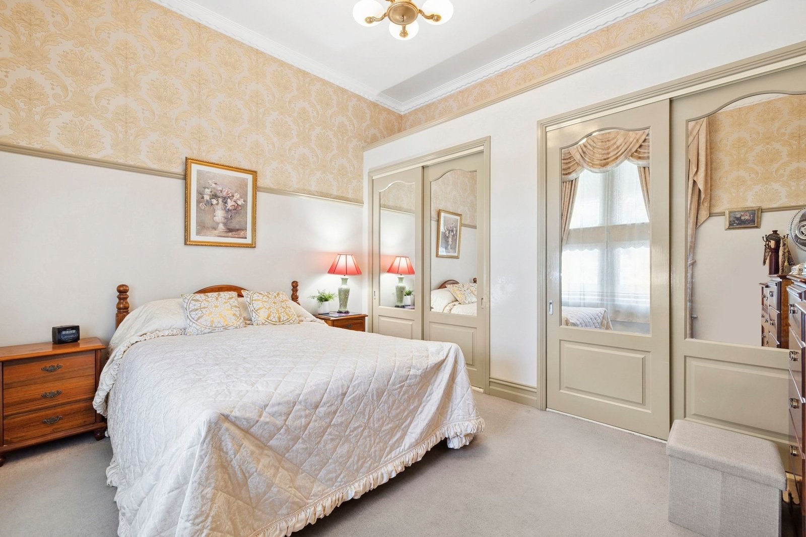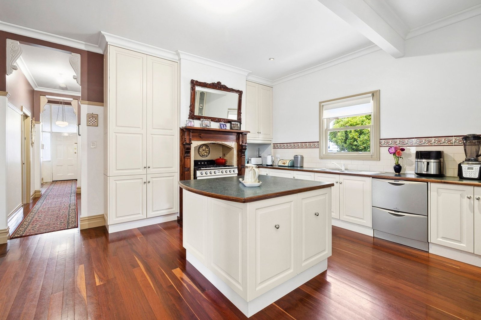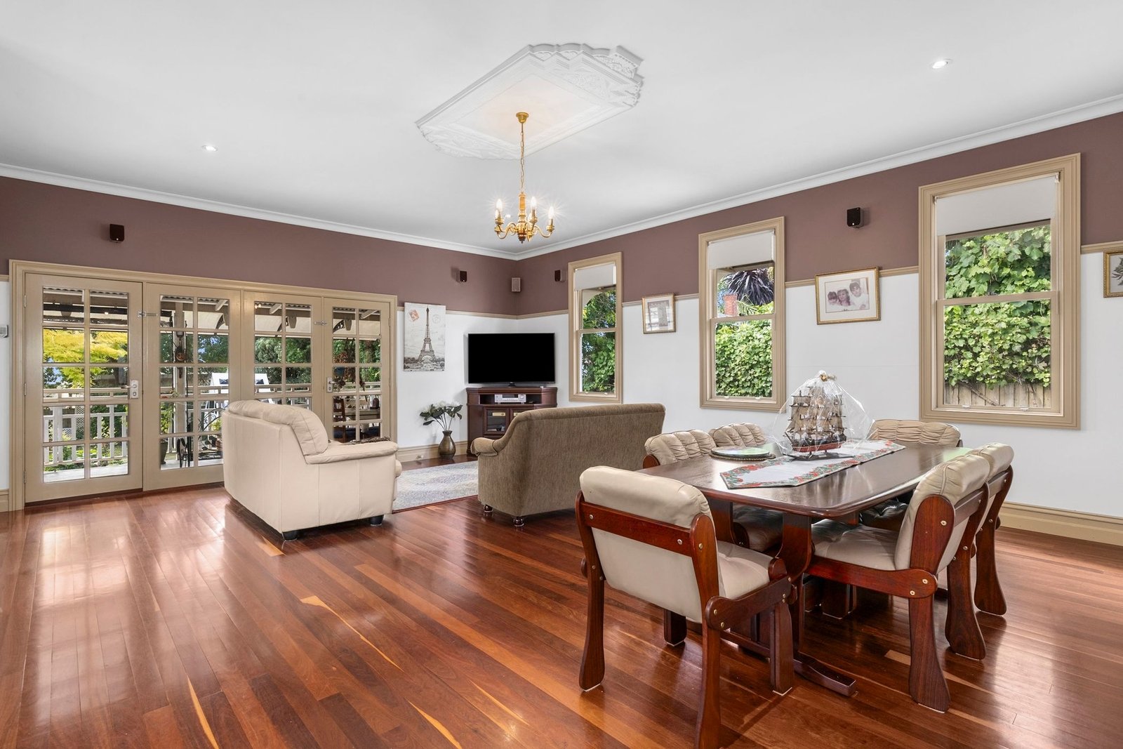 Step into elegance as you enter through the beautiful grand entrance, adorned with stunning ceiling roses and intricate cornices, setting the tone for what lies beyond.