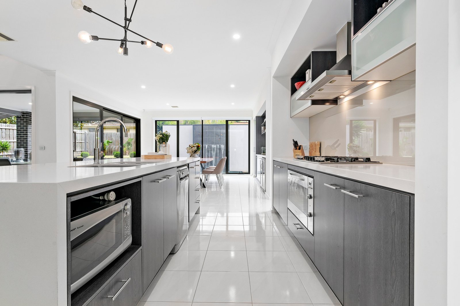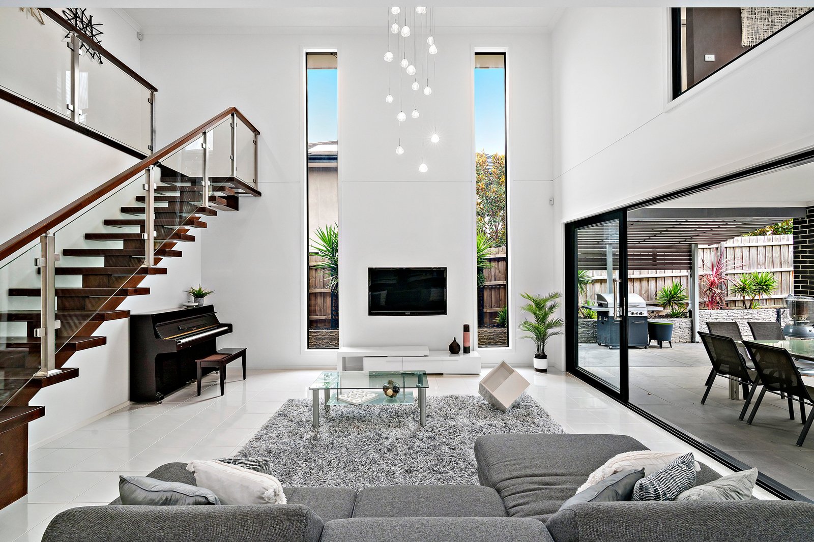 Exclusively appointed with dramatic suspended lighting, a street facing Juliette balcony, ducted heating and evaporative cooling, video intercom and security, hideaway clothesline and shed, and a double garage with internal entry through the mud room and laundry.