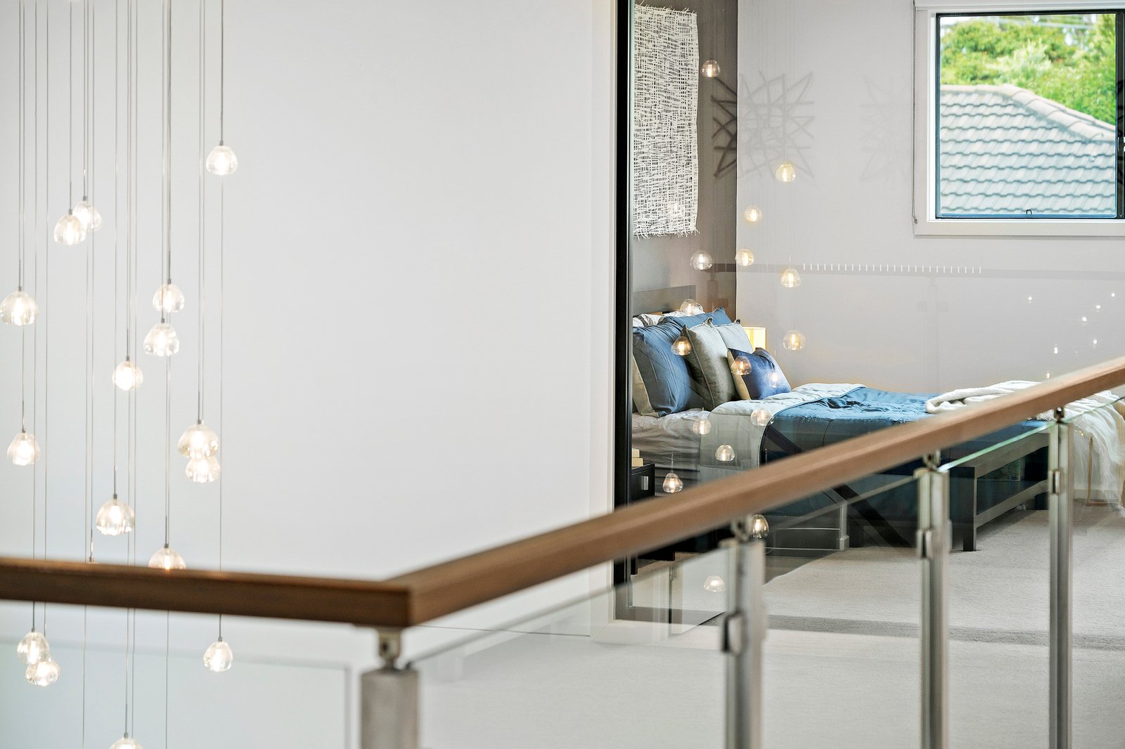 The floating stairs lead you to the quiet corners of the bedroom wing.