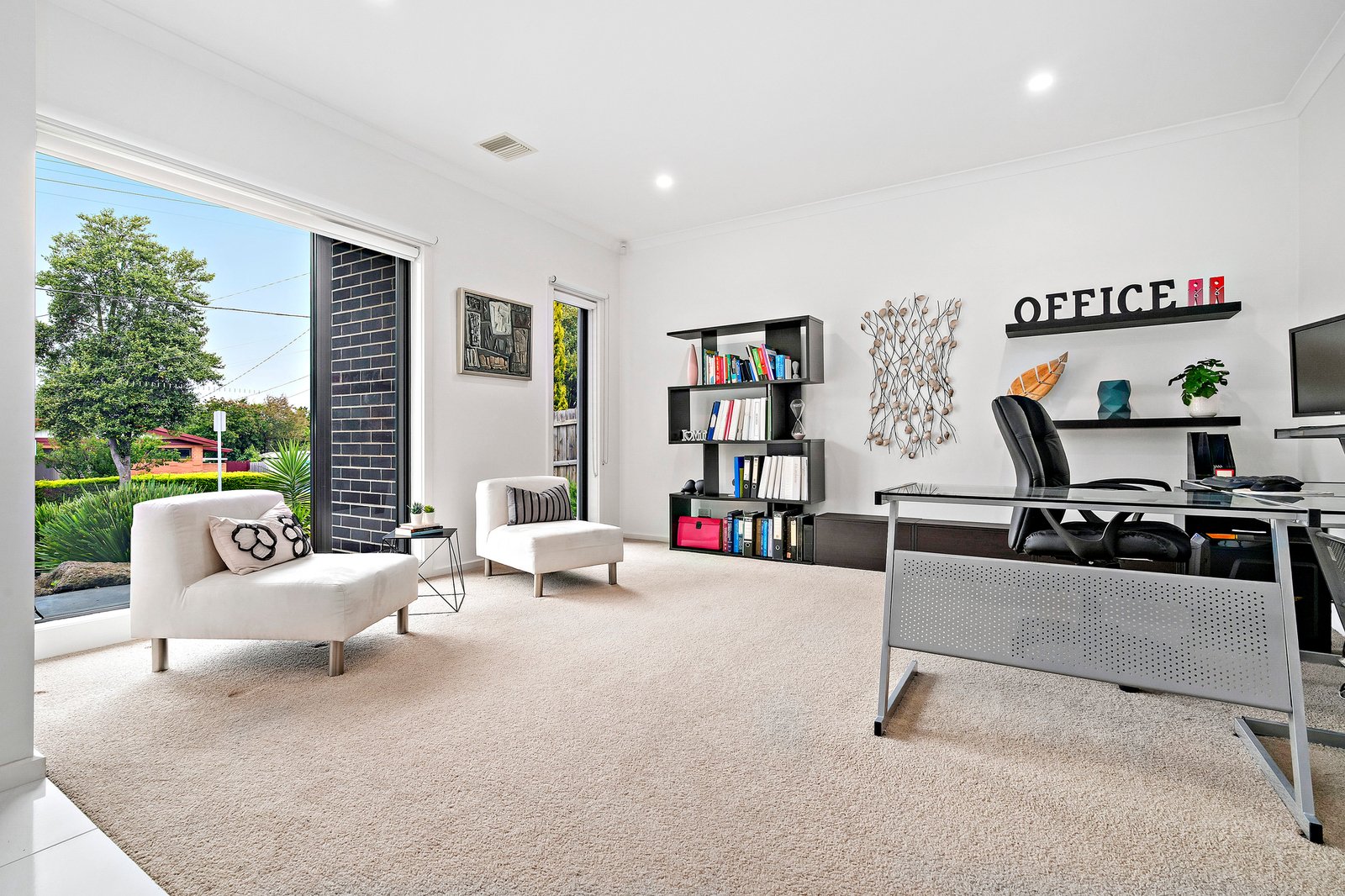 The distinctive layout attracts light in all the right places, and zones private spaces in which to work, entertain, and retreat – including a beautiful front office or formal lounge and a rumpus on the upper level.
