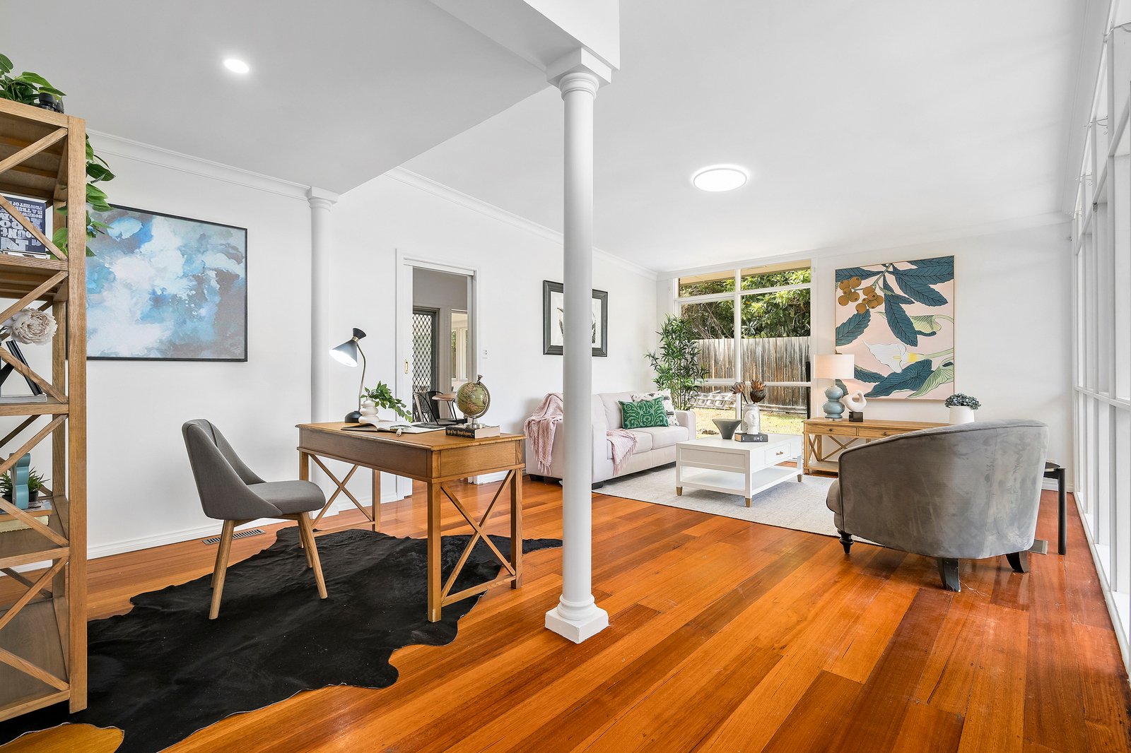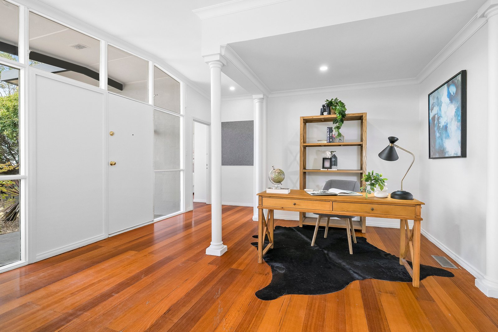 Freshly painted throughout, the home provides an inviting tone with the splendid lounge and study zone adorned with a wealth of light-filled windows, polished hardwood floorboards and angular ceilings.