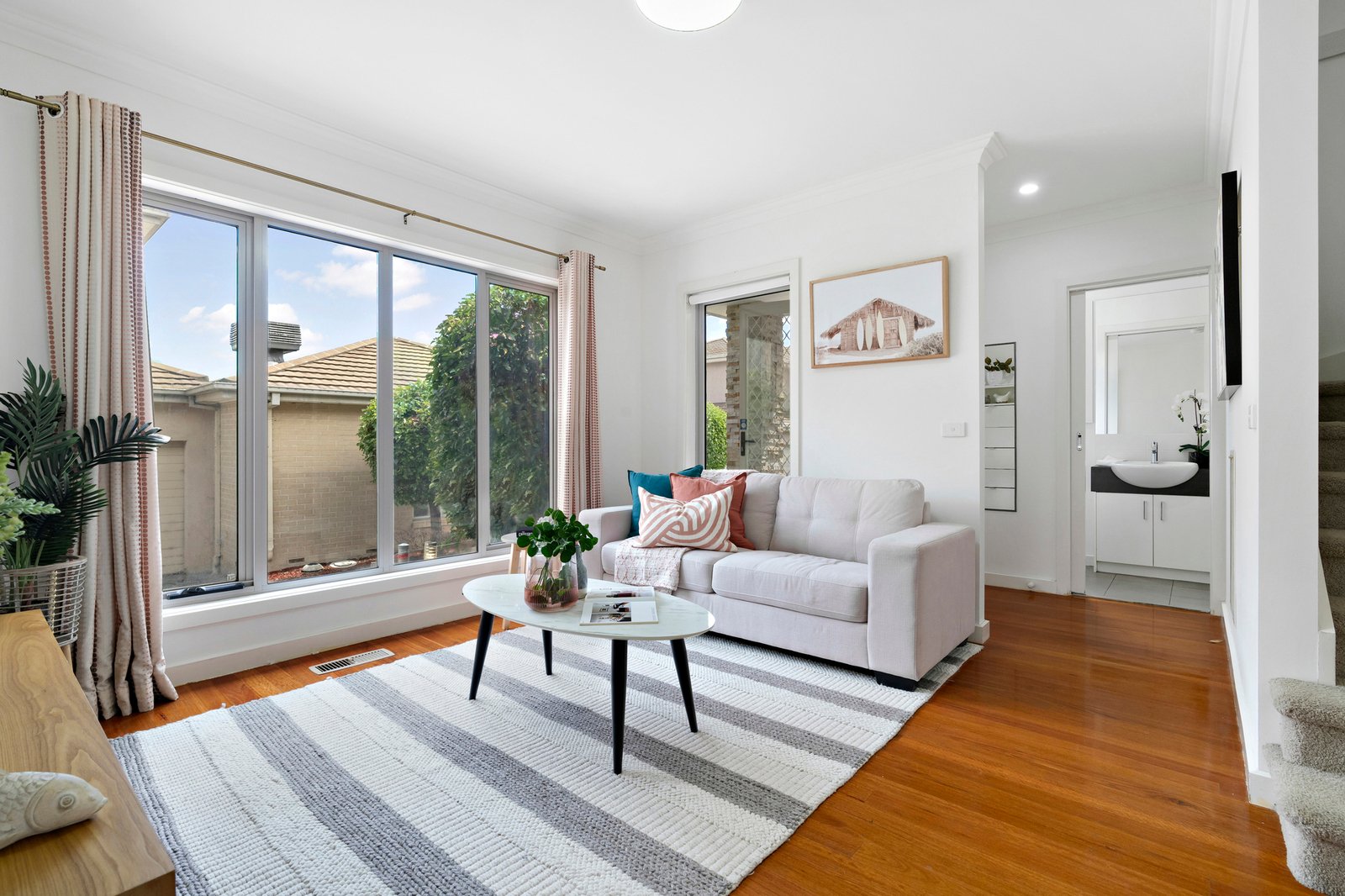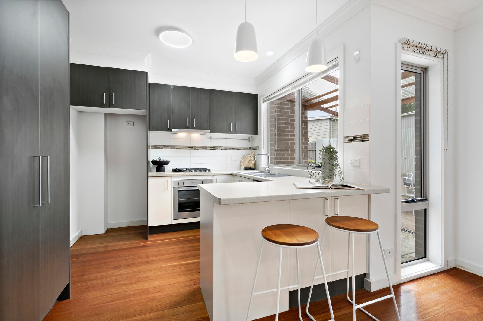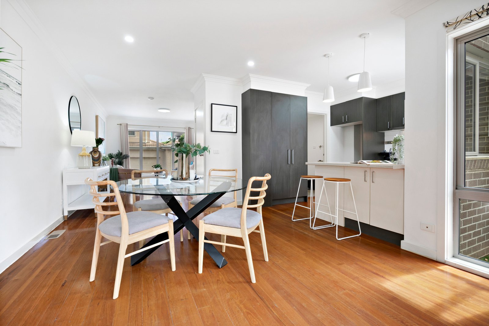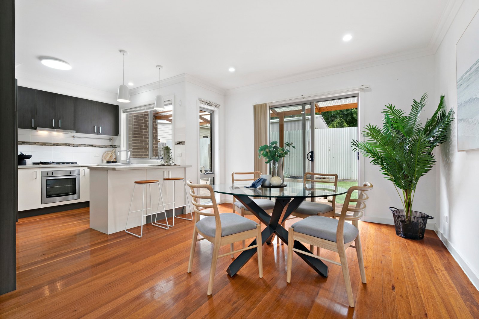 Delivering a streamlined vibe, polished floorboards glide underfoot from the stunning lounge room through to the dining zone and kitchen equipped with stainless-steel appliances plus a handy breakfast bench, while a large no-fuss courtyard offers the appeal of synthetic turf and a paved entertaining zone.