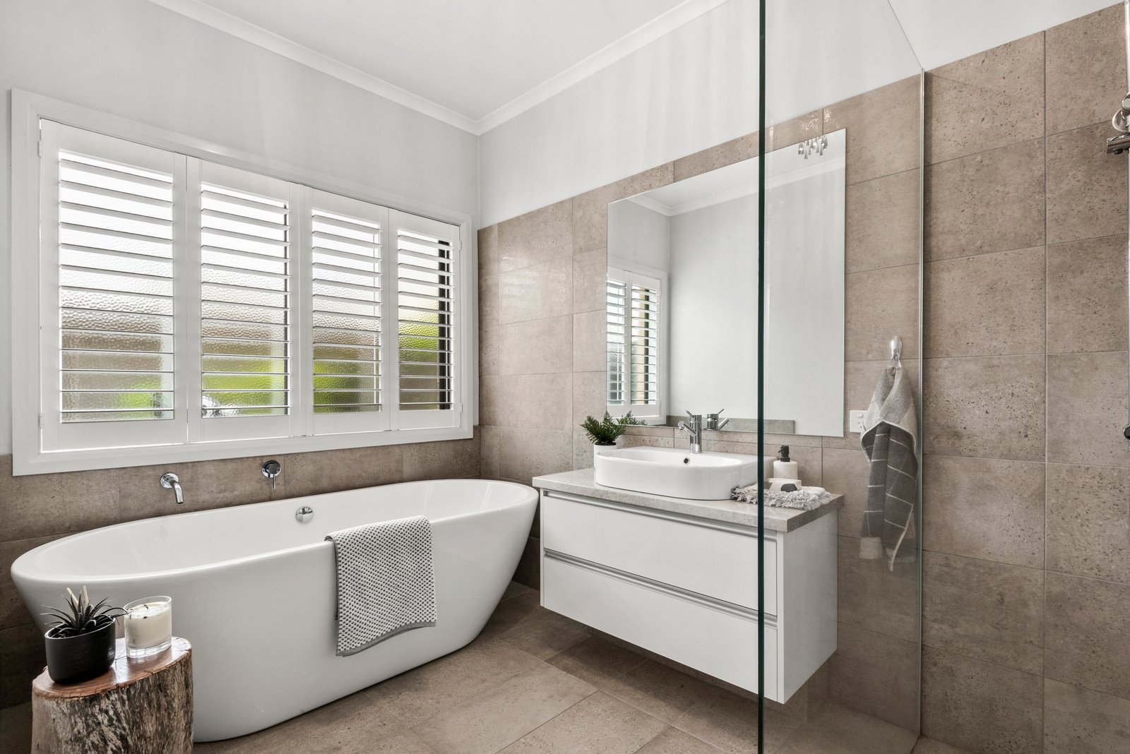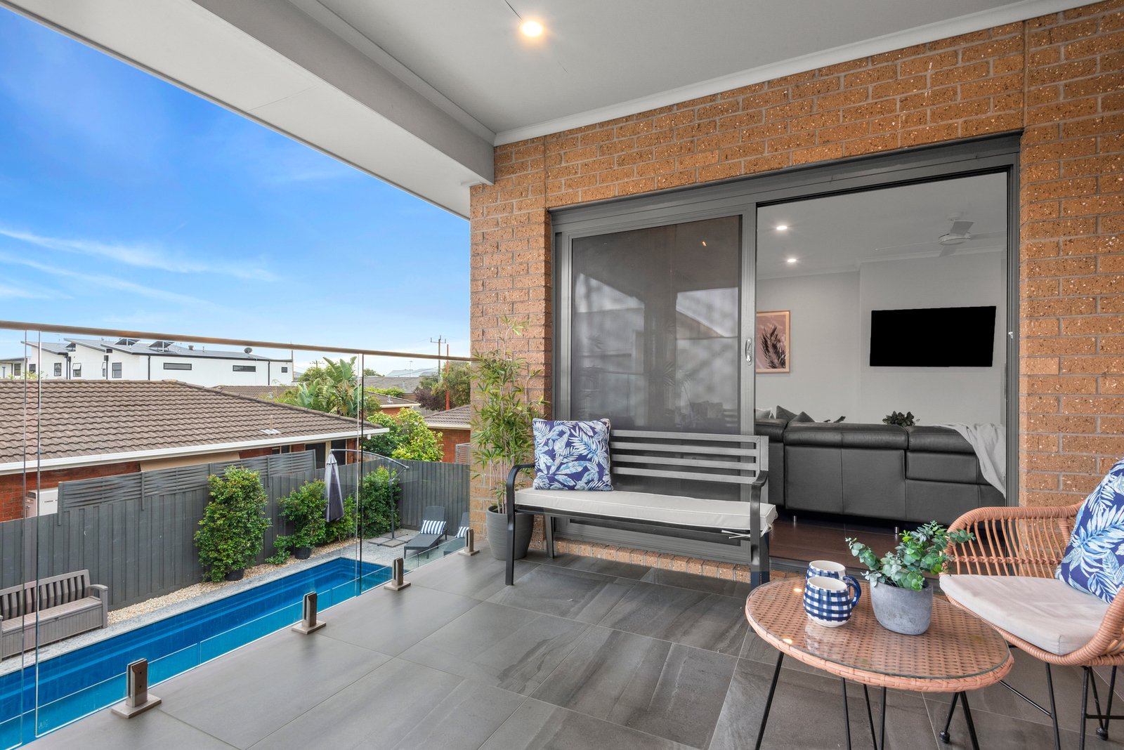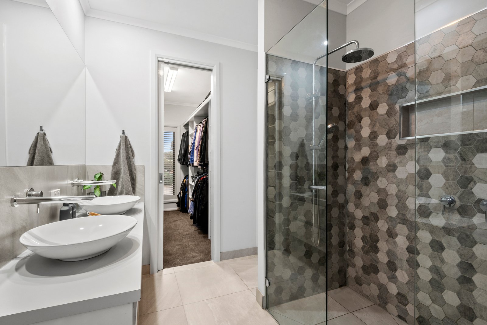 Comprising four bedrooms, the upstairs master features stylish bedside pendants, generous walk-in robes and a luxurious ensuite with double vanity, quality tapware and fittings, spacious shower and separate wc. Two further bedrooms include built-in robes, serviced by a modern family bathroom with a beautiful freestanding bath, and the fourth bedroom includes walk-in robes and ensuite, with a poolside outlook, direct access to the alfresco, plus adjoining kitchenette, perfect for a guest room or teenage retreat.