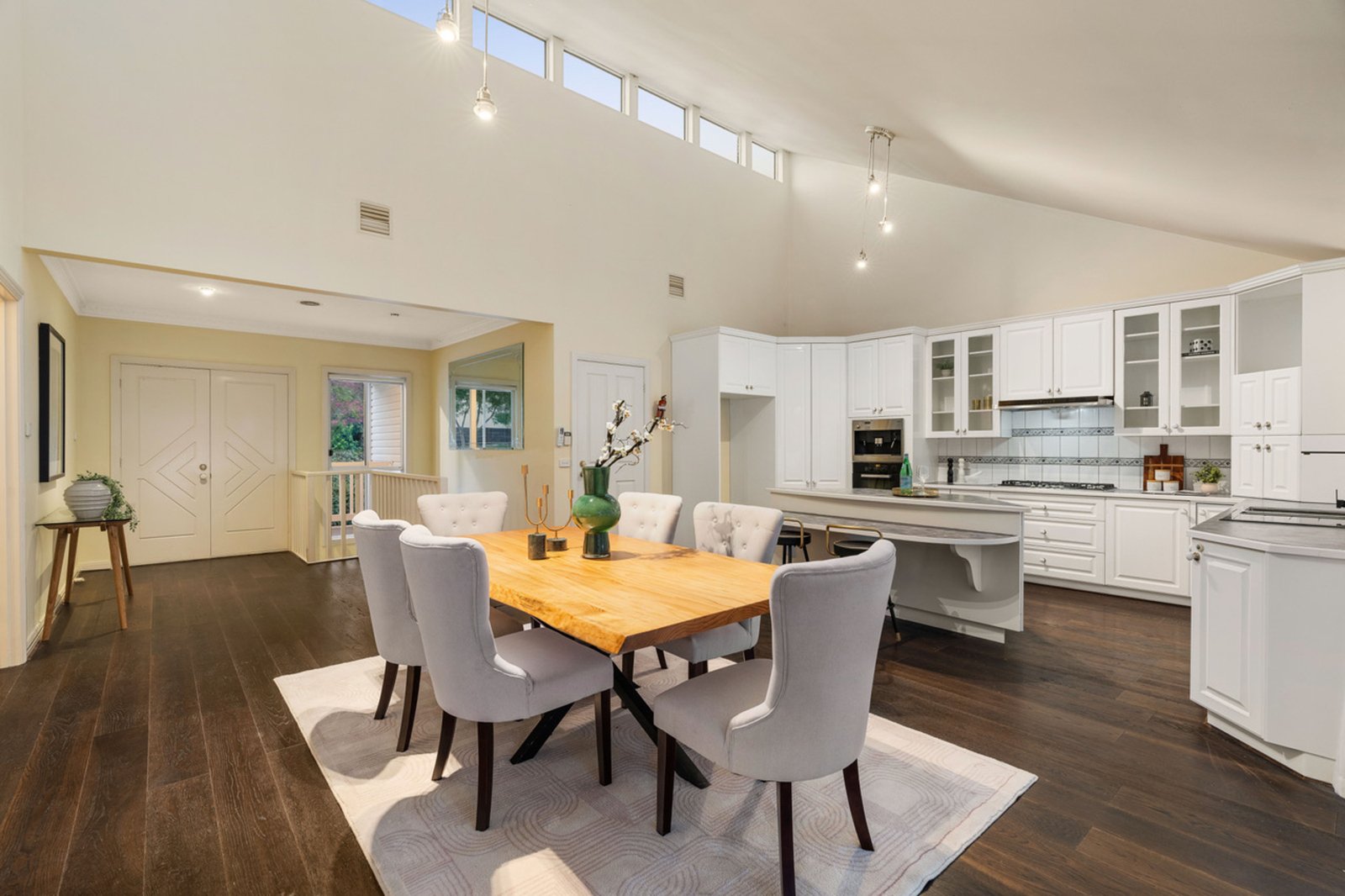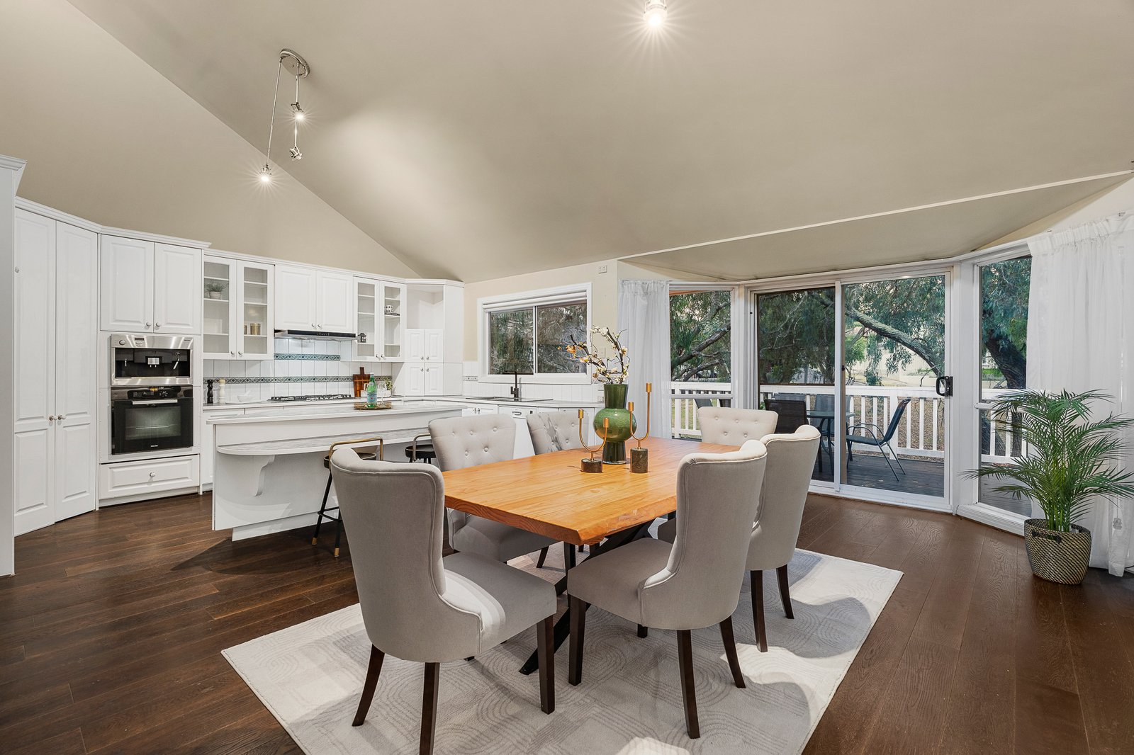 Dark timber flooring streams through the expansive lounge room and into the open dining room crowed with a vaulted ceiling. Be spoilt for choice with two kitchens, one on each floor. Cook with pleasure in the stylish main kitchen with an island, Miele oven and coffee machine while your friends relax out on the substantial alfresco deck where the views are at their finest.