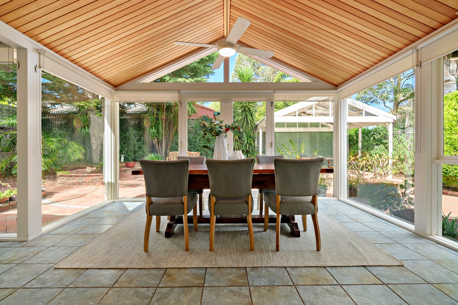 For families wanting space, the home’s multiple living areas include a light-filled living room, family area and spectacular sunroom – Scandi style with a pitched timber roof and almost full glass windows to take in the rear garden and its BBQ gazebo.