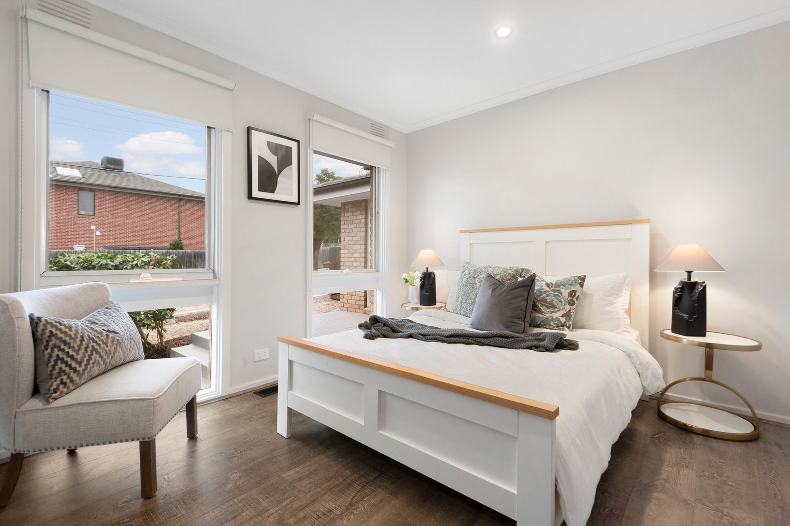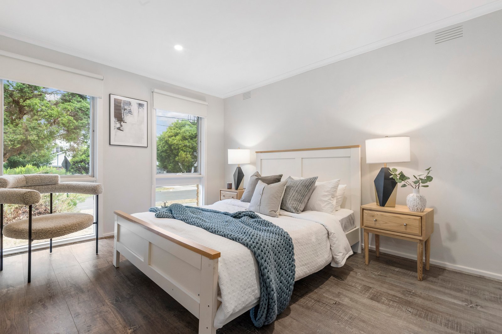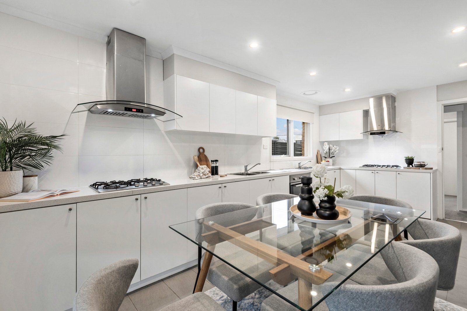 Refreshed with new floors, and a grand galley kitchen with 2 gas cooktops, the east-facing home lets in beautiful morning sunshine into the bedroom wing for bright energy and a radiant start to the day.