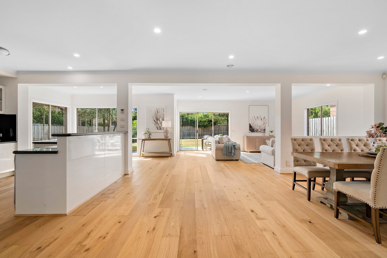 Refreshed with modern finishes, and awash with gorgeous natural light, the home’s stylish new floors sweep you from the formal living room into a light-filled kitchen and family wing – with space enough to cook, relax, and entertain across the airy open plan setting.