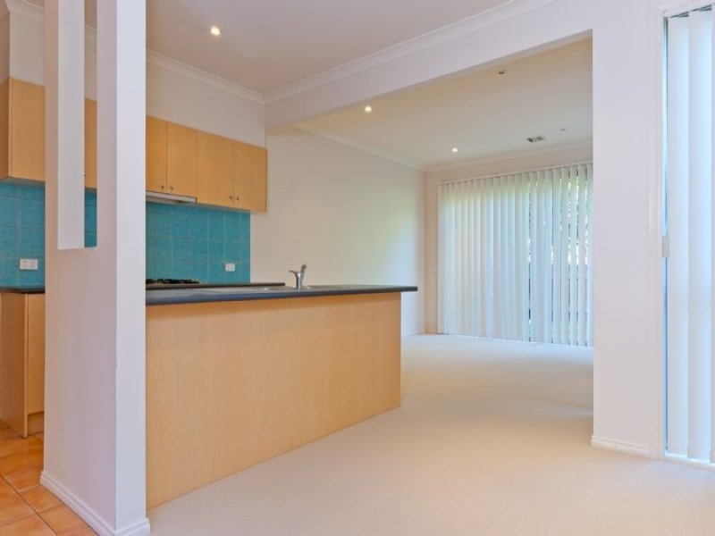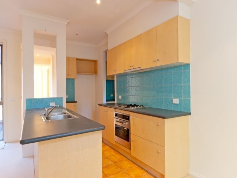 Galley style kitchen, adjacent to dining area flooded by natural light