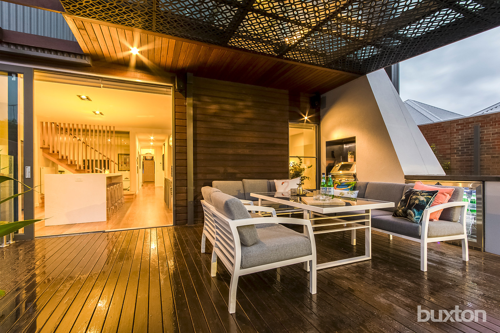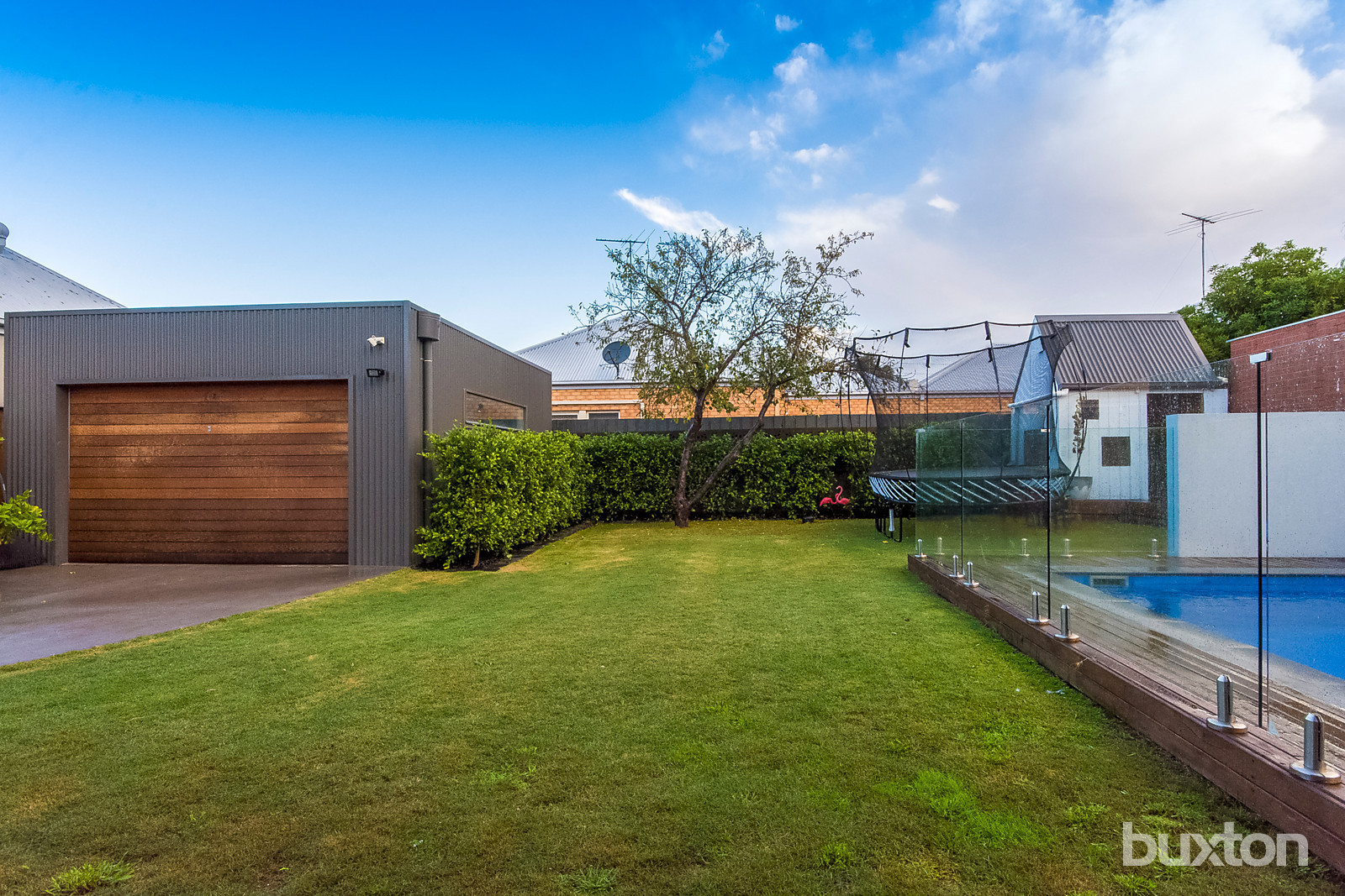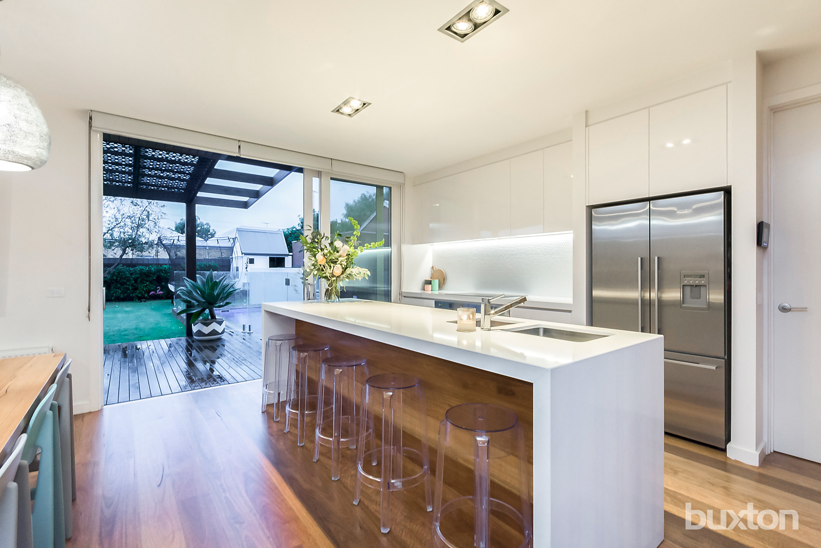 The kitchen overlooks the dining area and spacious living space that opens to the rear deck through large stacker doors and creates an envious indoor/outdoor entertaining space with in-built BBQ to plumbed gas and a dual door bar fridge. From the rear deck it's easy to keep an eye on the kids in the large backyard and in-ground solar heated pool. There is a second deck to the other side of the living room, which is sheltered and intimate with a remote awning to keep you out of the elements all year round.
