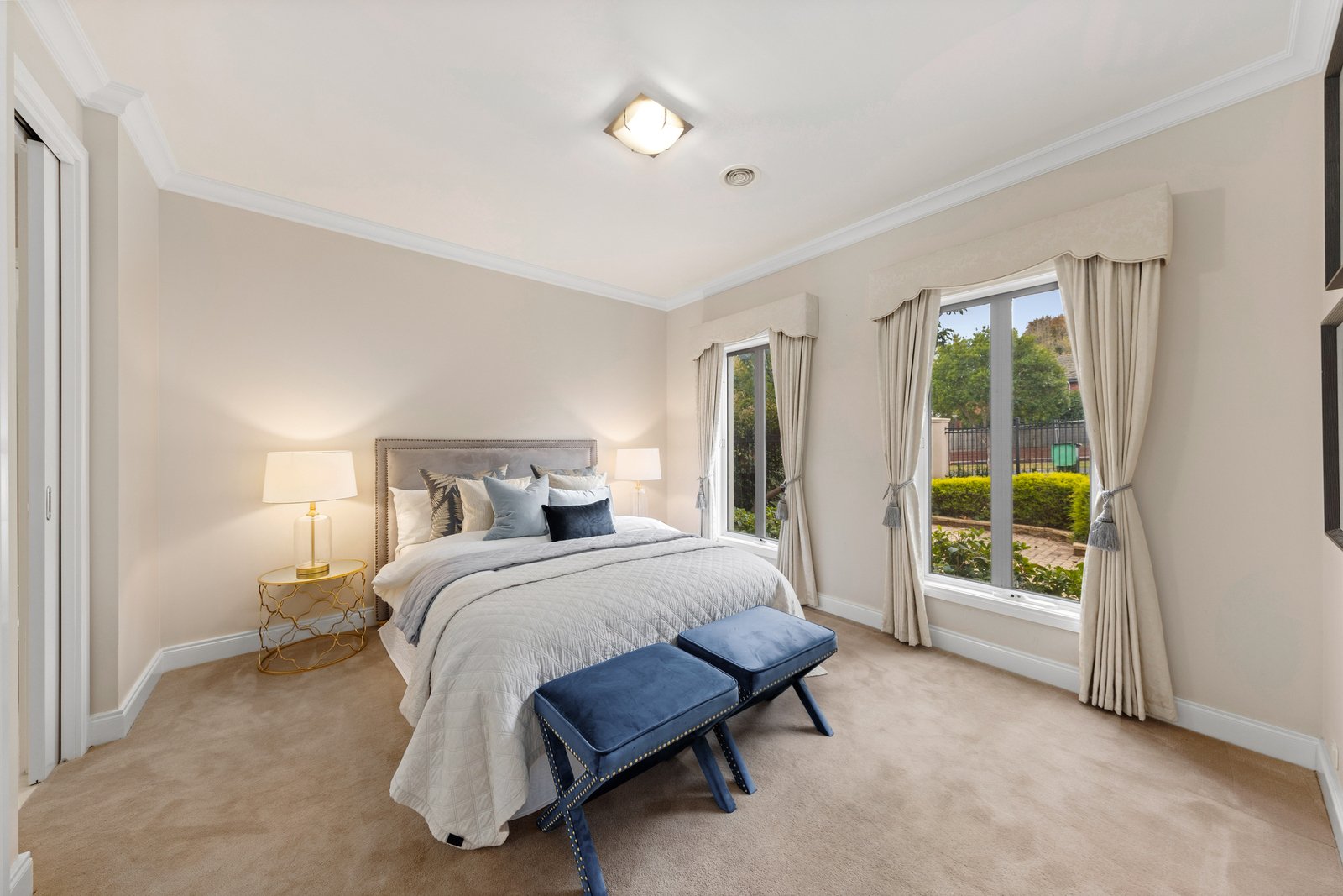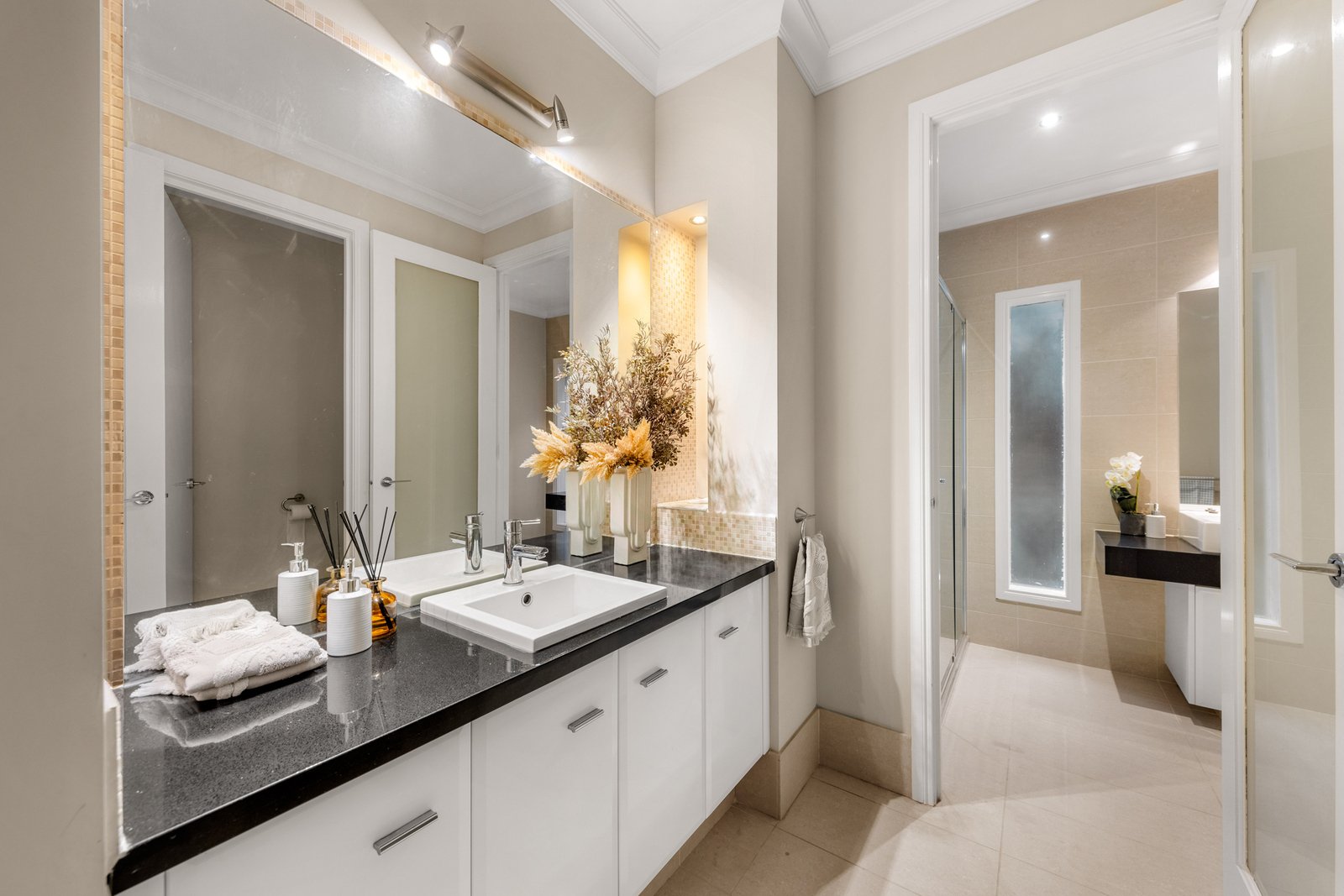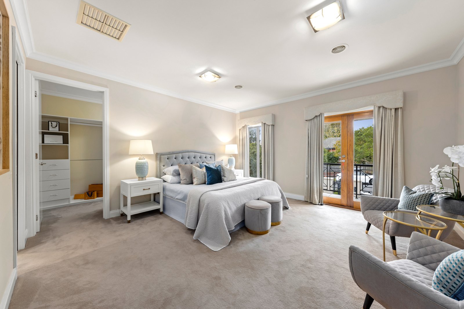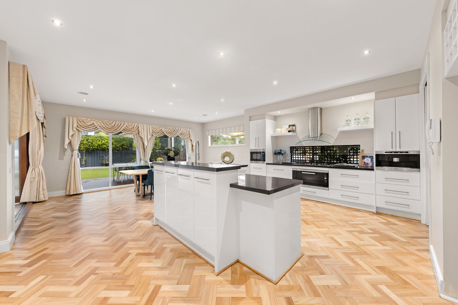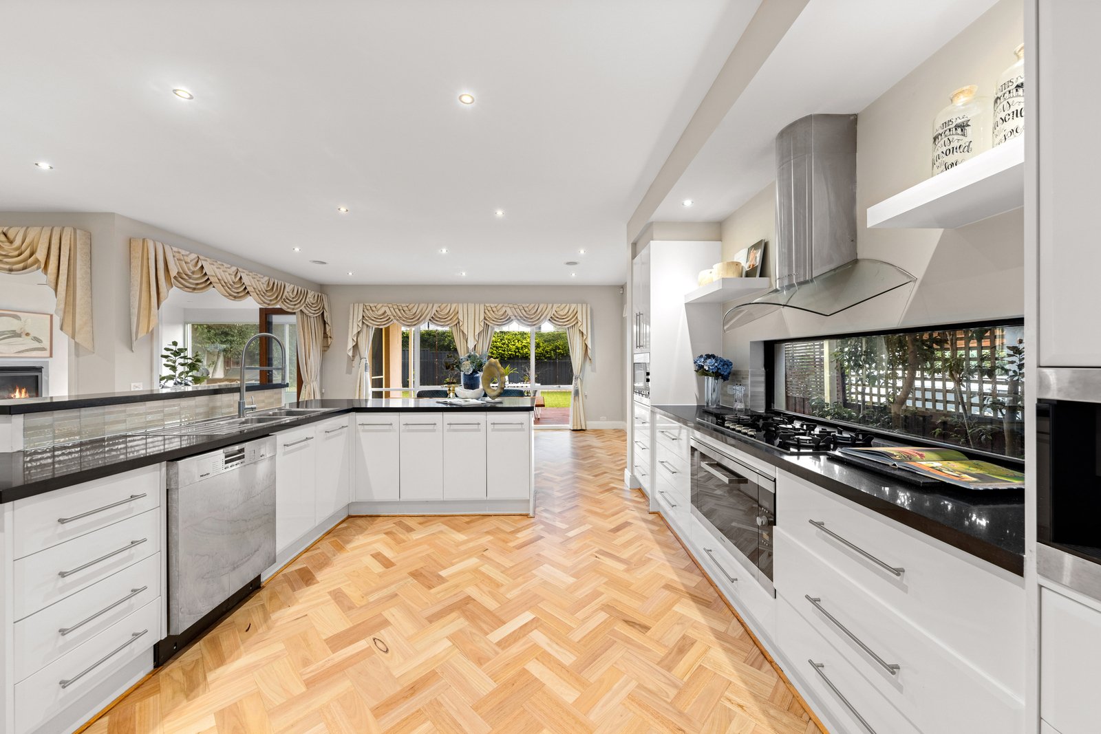Luxury and style are at the fore of the impeccably designed floorplan, introduced by a comfortable lounge room with a 2-way gas log fire that also warms the adjacent family room and dining zone. A showpiece kitchen anchors the living areas, appointed with a granite breakfast bar, a full complement of quality Miele appliances, and a butler’s pantry with a preparation sink. Designed for casual meals or large-scale entertaining, there’s a seamless connection to the private backyard, featuring a large covered alfresco zone with a gas log fire, a sunny open-air deck, and a low-maintenance garden. Accommodation is well-zoned and includes a ground-floor guest bedroom with an ensuite and walk-in robe, leading upstairs to the sumptuous master suite boasting a Juliet balcony, a walk-in dressing room and a deluxe ensuite finished with an oversized rain shower, spa bath and a granite dual basin vanity. A teenager’s retreat sits alongside the children’s wing, featuring three spacious bedrooms, each with a modern ensuite and walk-in robe.