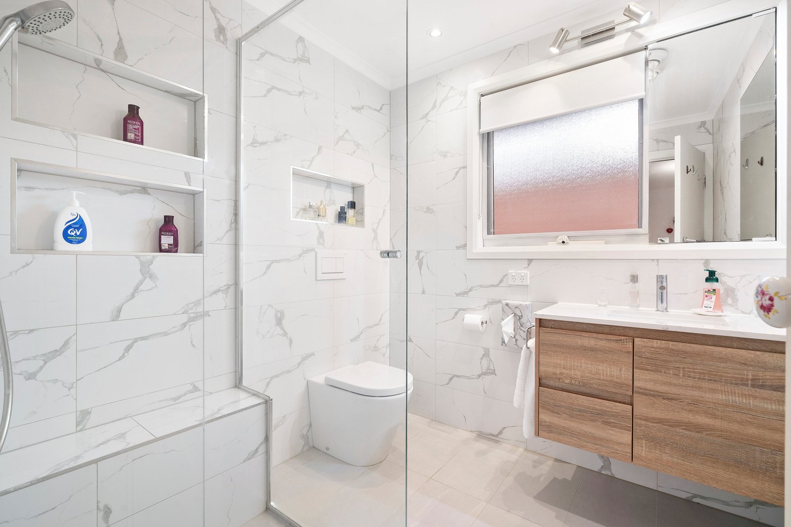 Set over a single level, the clever zoning of the bedrooms at either end, promise privacy for both parents and children with a stunning new ensuite tiled in stylish Calacatta all the way to the ceiling.