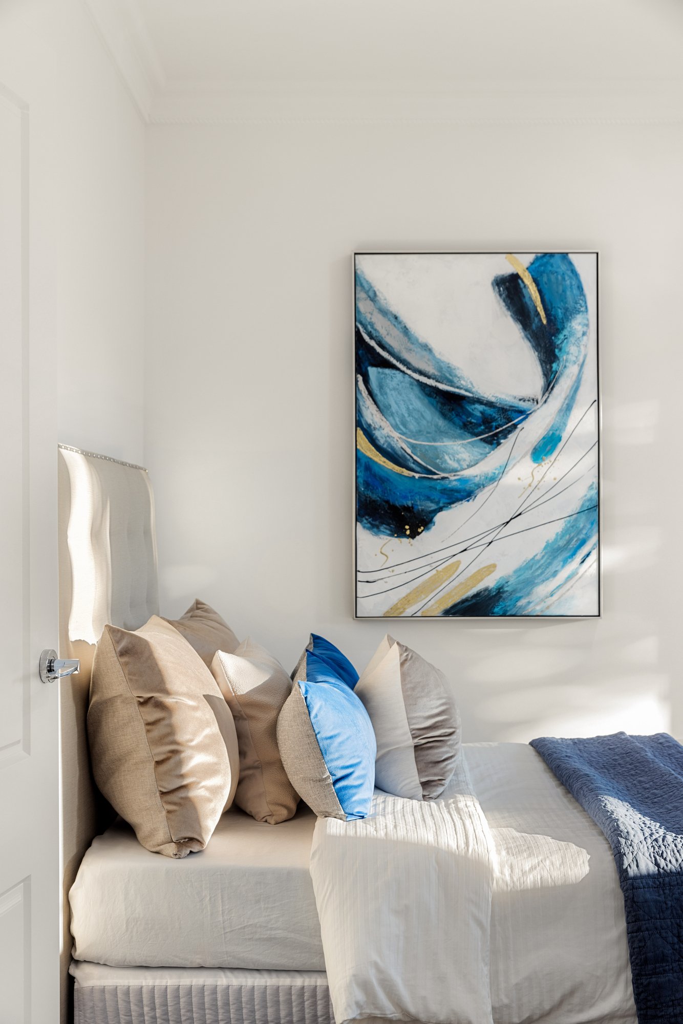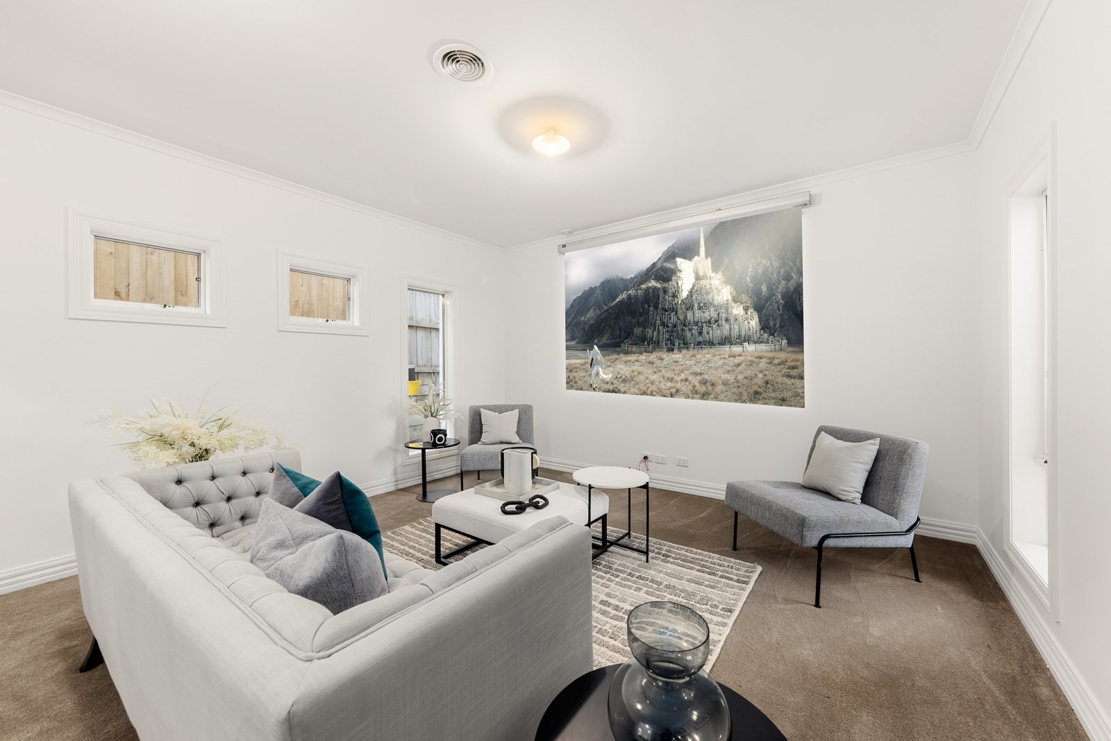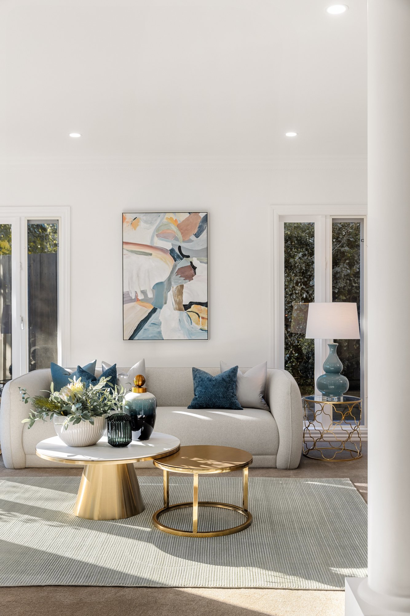 Placed at the rear, a home theatre provides an enjoyable place to watch a movie together on the big screen, while a dedicated ground-floor bedroom with a private bathroom offers versatile accommodation for guests, adult children, or ageing parents. A chandelier-draped staircase takes you upstairs, where you will find the opulent master suite boasting a sitting area flooded in light, a relaxing spa bathroom and walk-in robe.
