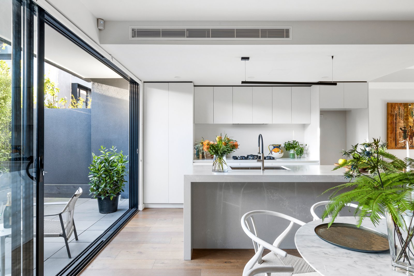 Curated with an expert eye for detail with premium stone benchtops, blonde Oak floors and the latest textured-loop wool carpets, the home is specified to beyond-prestige standards with walk-in and built-in robes, individual climate-control to every room, and an openable skylight alongside the stairwell.