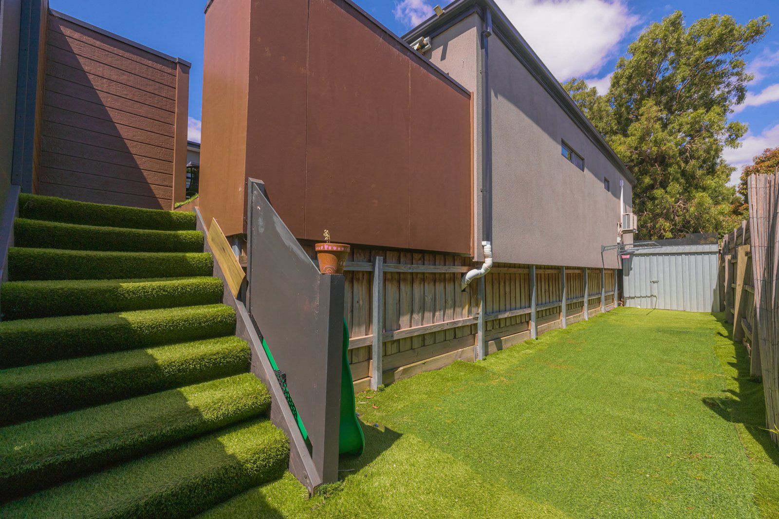 Market entrants, downsizers and investors will further appreciate a huge bedroom with BIR and luxe 2-way ensuite, split system heating/AC, sunny entertaining terrace stepping down to a private synthetic turf courtyard (130sqm approx and all on title), shed, 2 storage cages and car space.